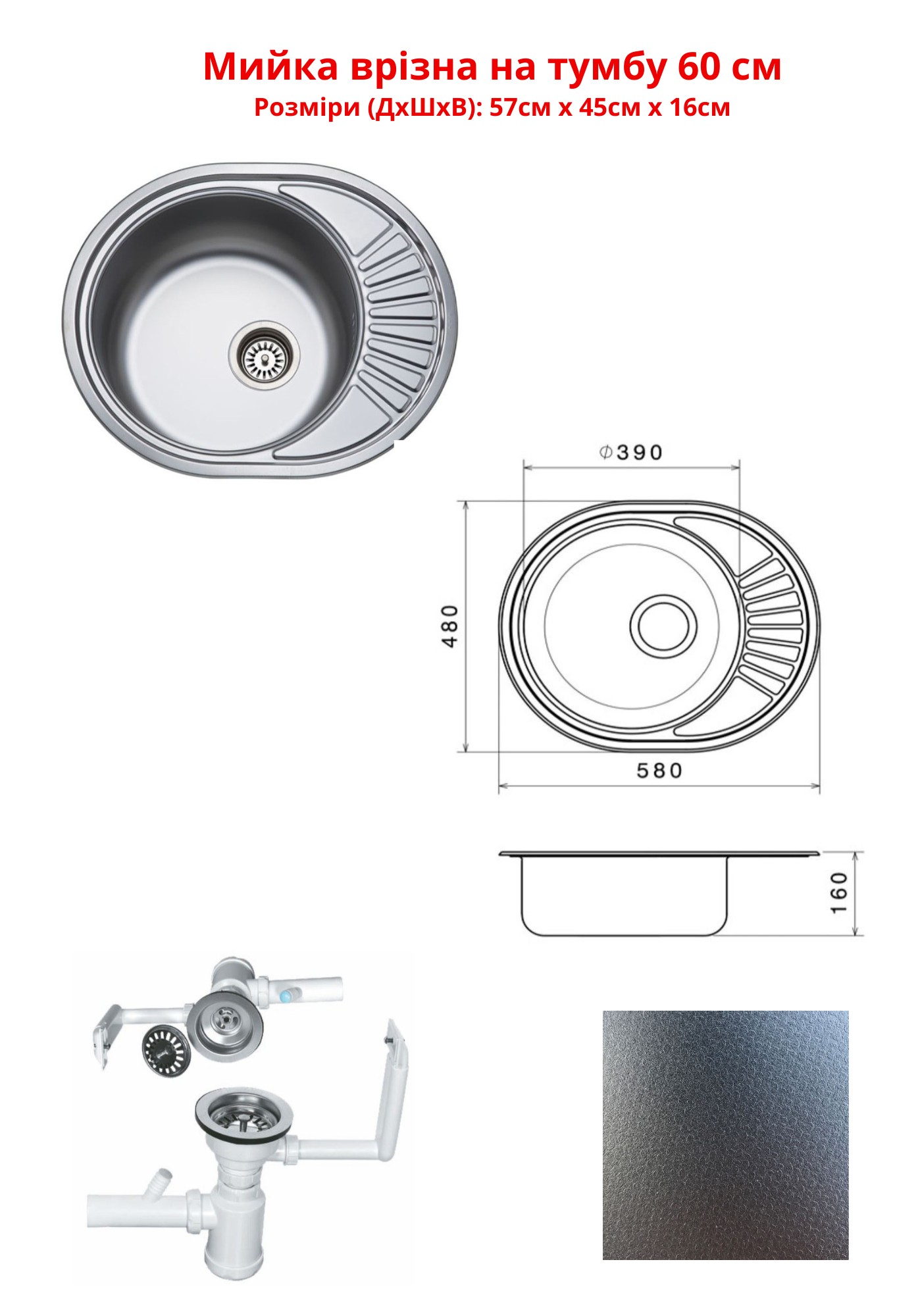 - Комплектація: кожна мийка комплектується надійним сифоном для швидкого встановлення та безпроблемної експлуатації.