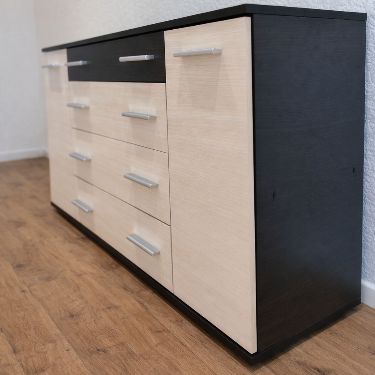 Комод К-4 з 4 шухлядами та двома тумбами, 130 × 38 × 73 см, дуб молочний / венге