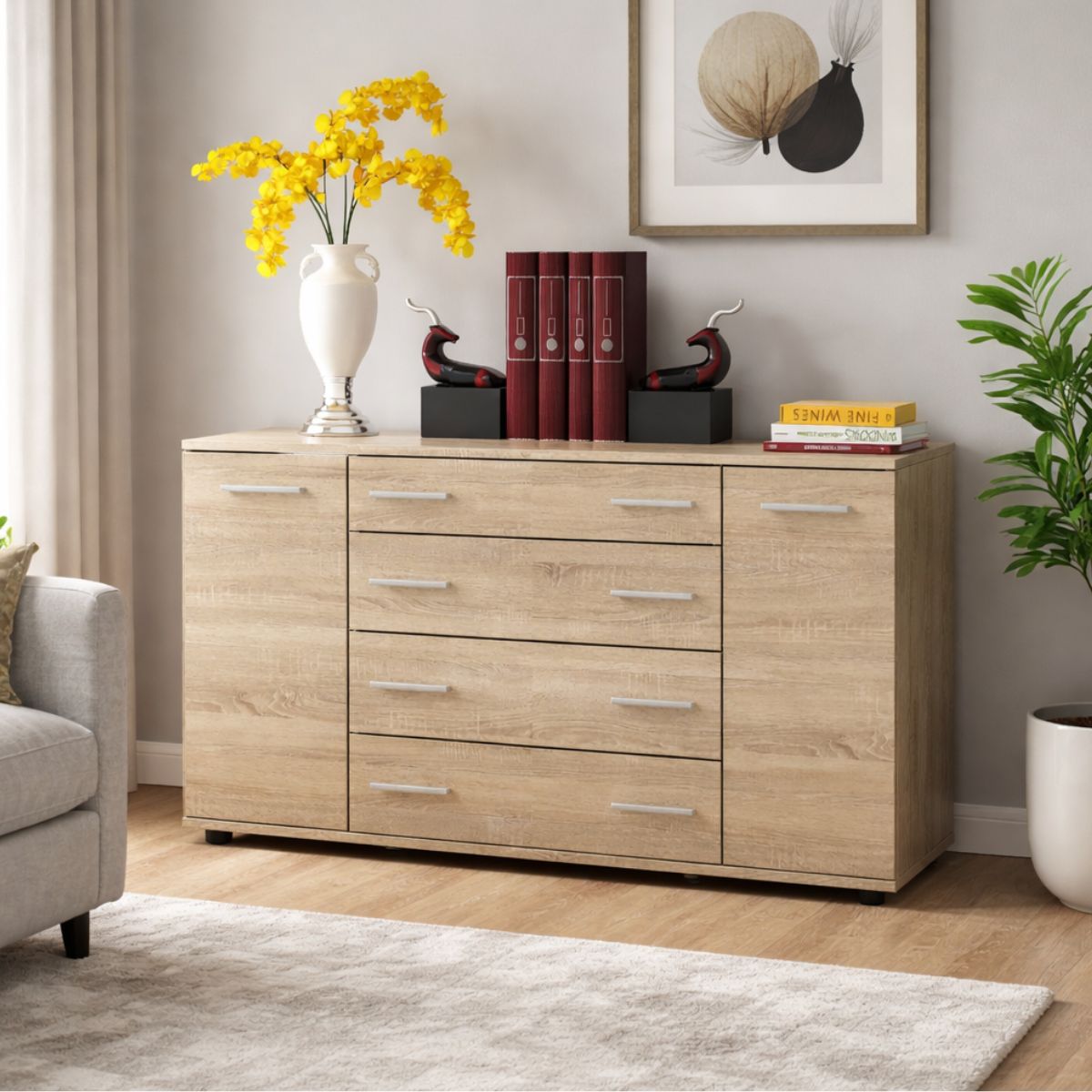 Теплий відтінок дуб сонома робить комод універсальним для