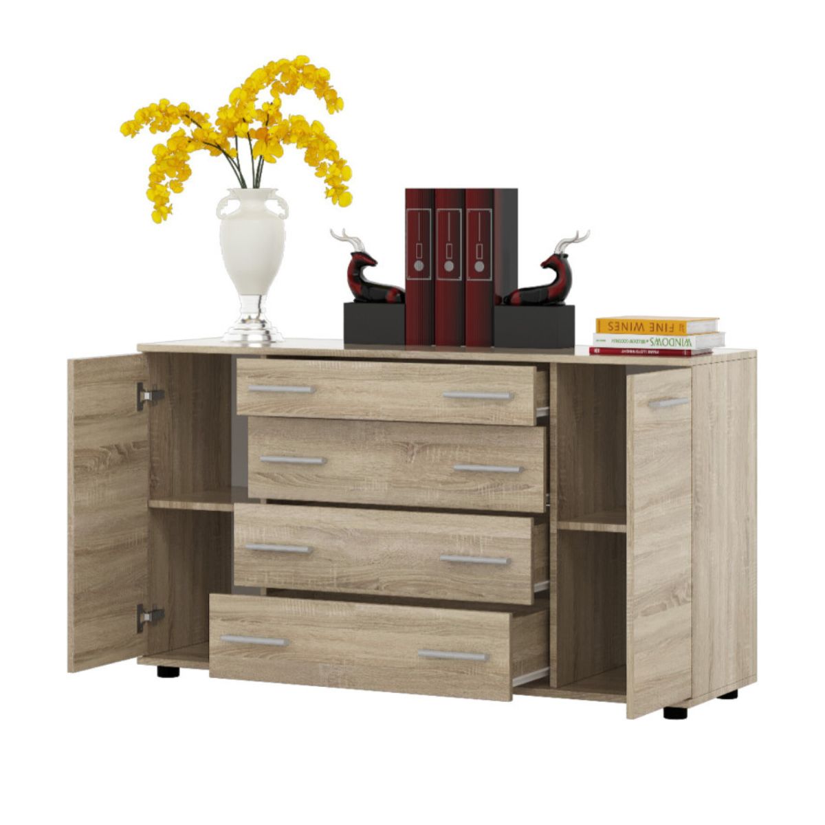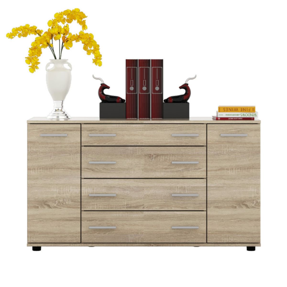 Комод К-4 з 4 шухлядами та двома тумбами, 130 × 38 × 73 см, дуб сонома