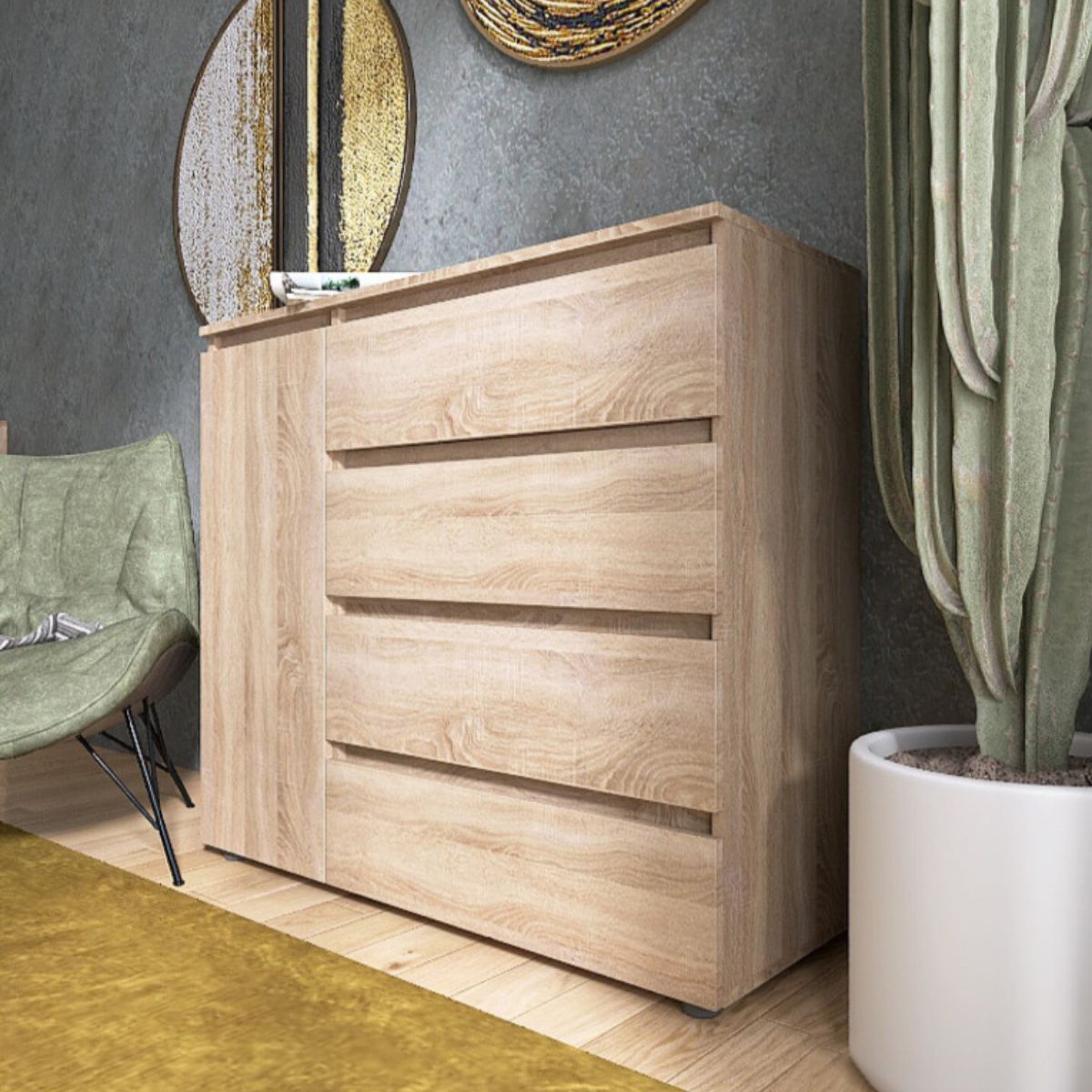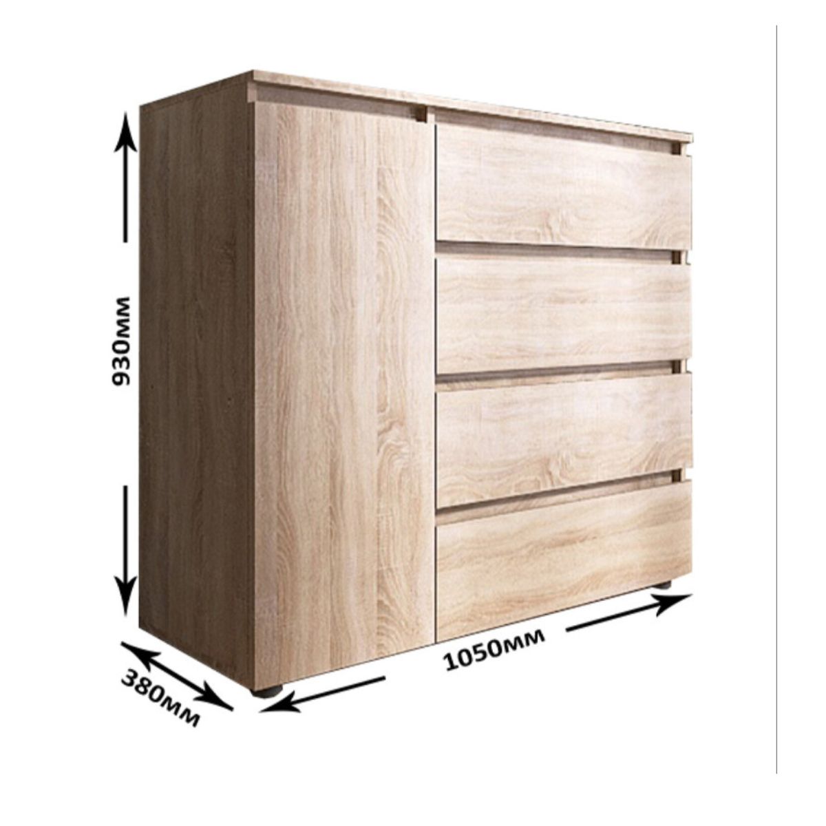 Комод КЛ-3 з 4 шухлядами та тумбою, 105 × 38 × 93 см, дуб сонома