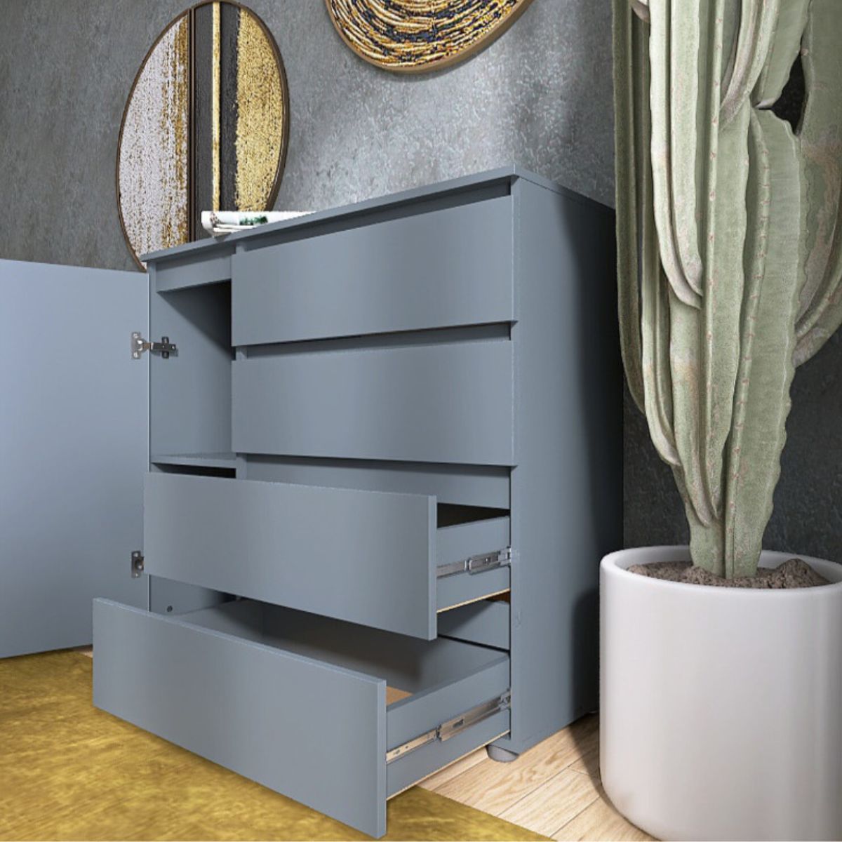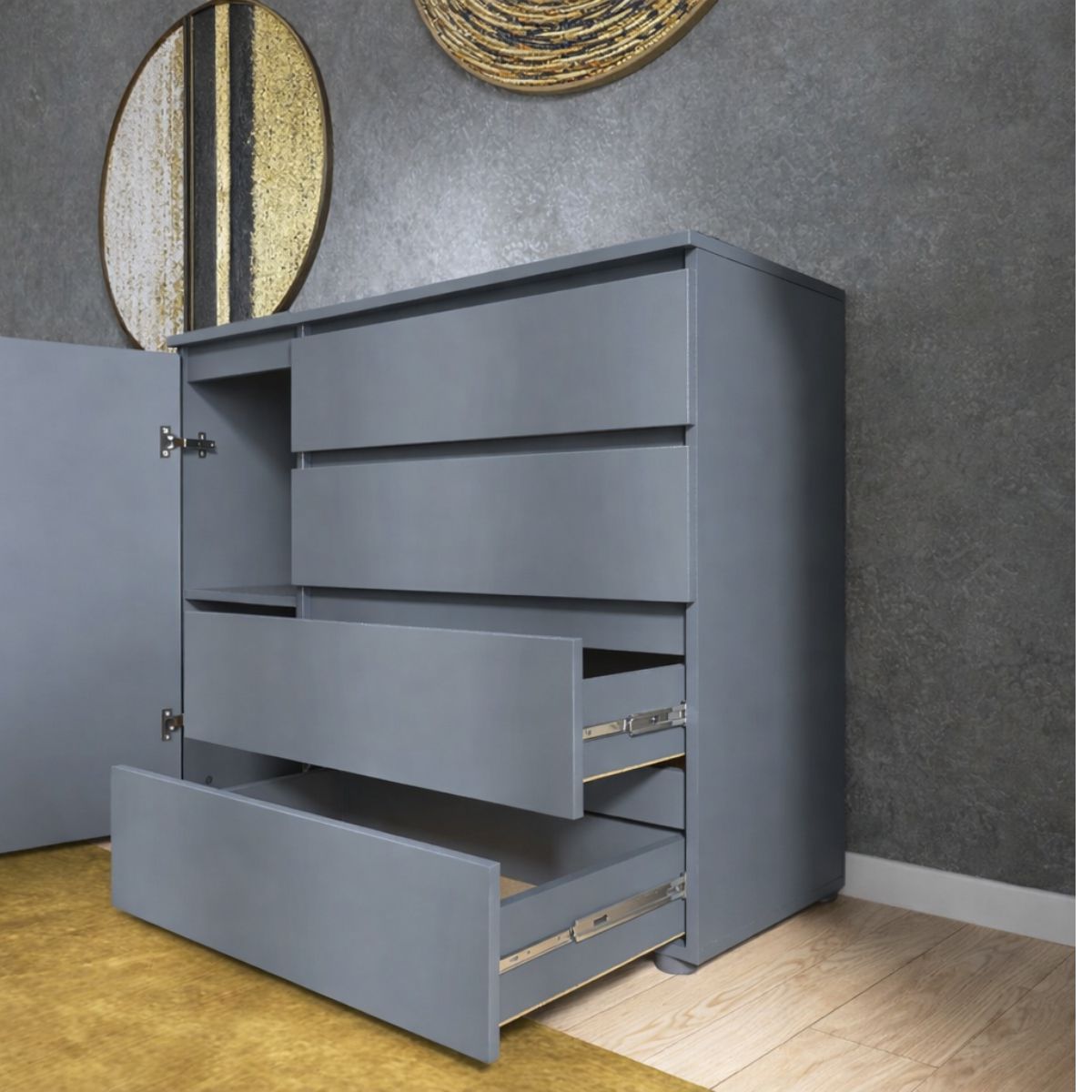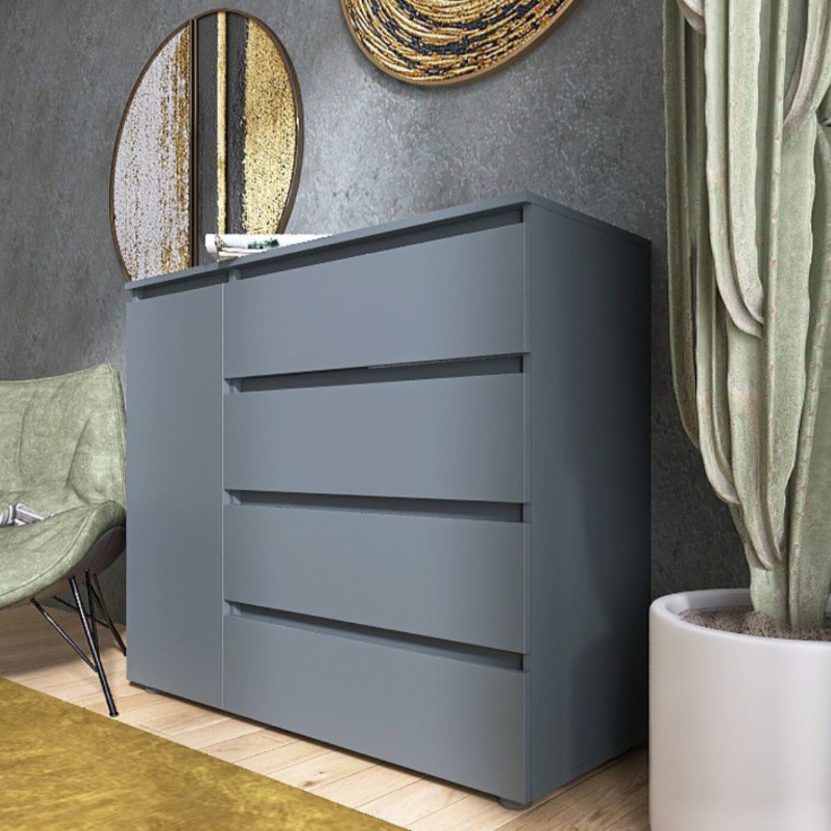 Стриманий колір графіт надає комоду сучасного та лаконічного вигляду.