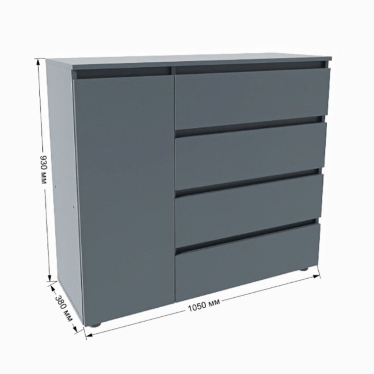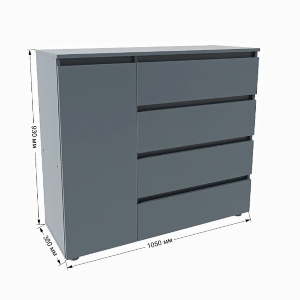 Комод КЛ-3 з 4 шухлядами та тумбою, 105 × 38 × 93 см, графіт