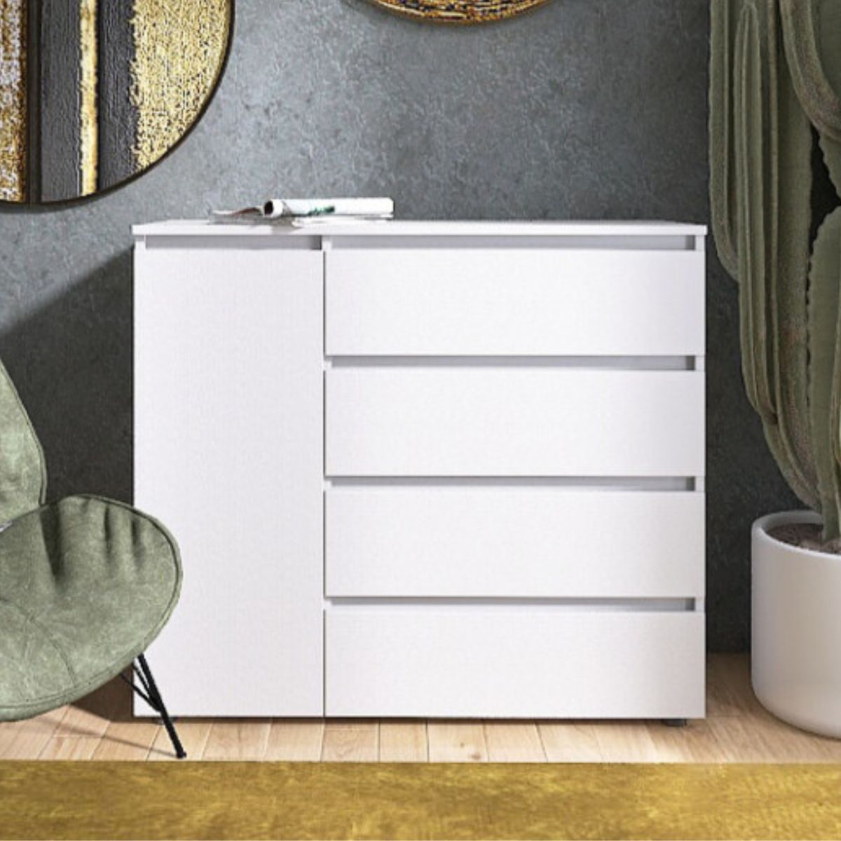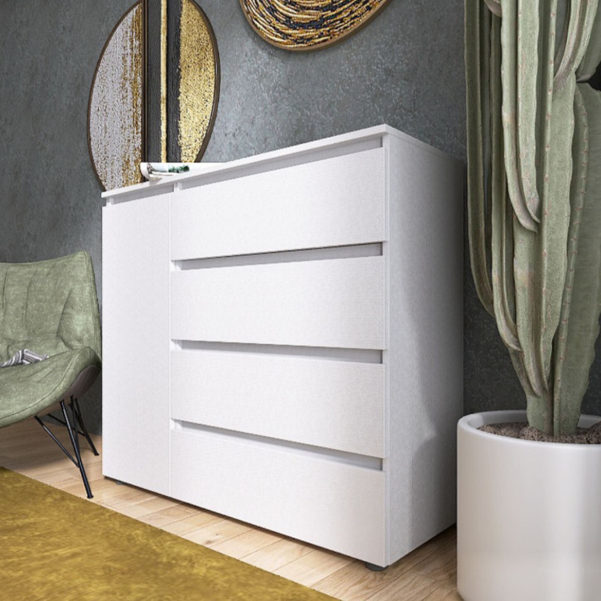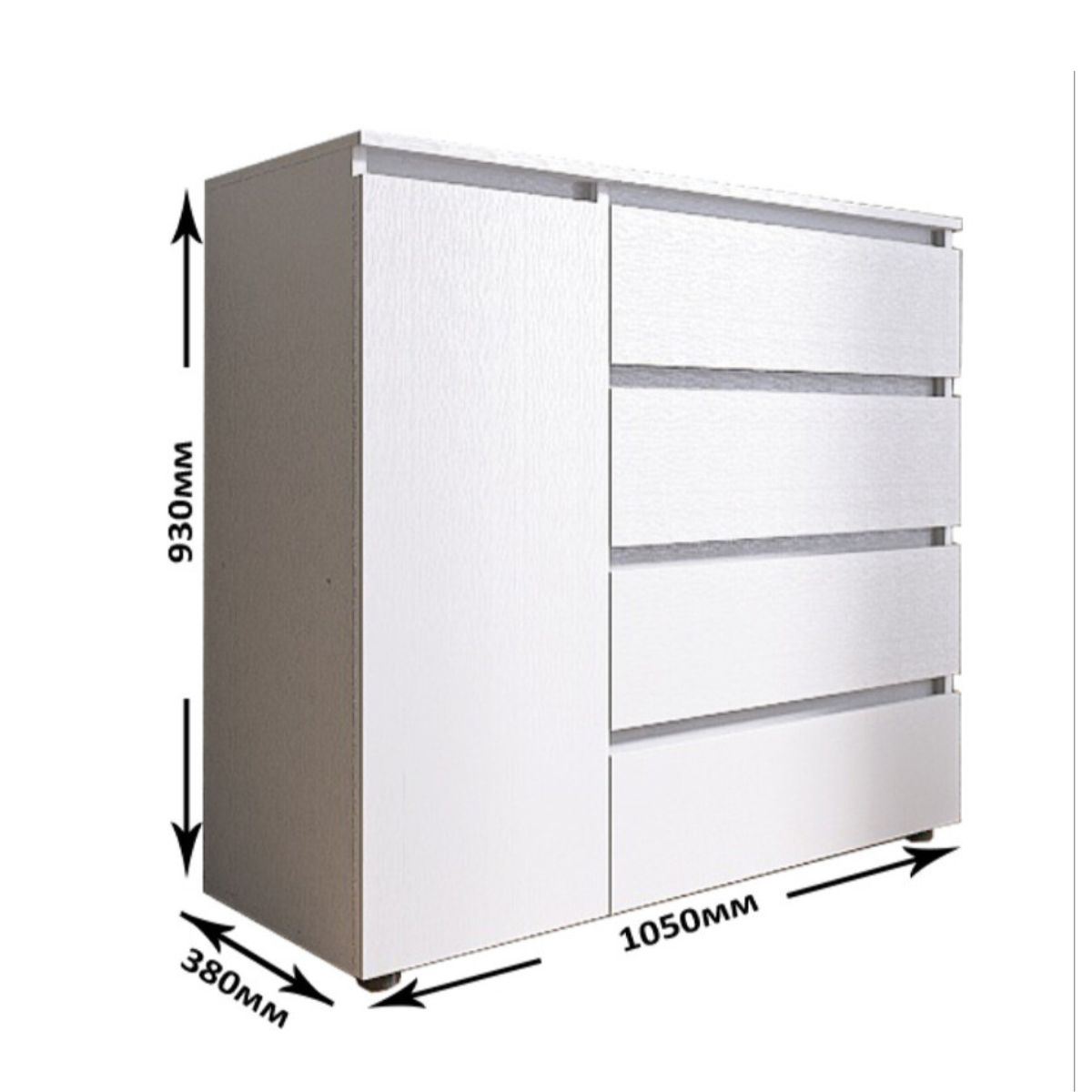 Комод КЛ-3 з 4 шухлядами та тумбою, 105 × 38 × 93 см, німфея альба (білий)
