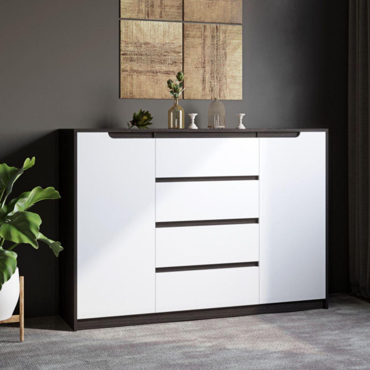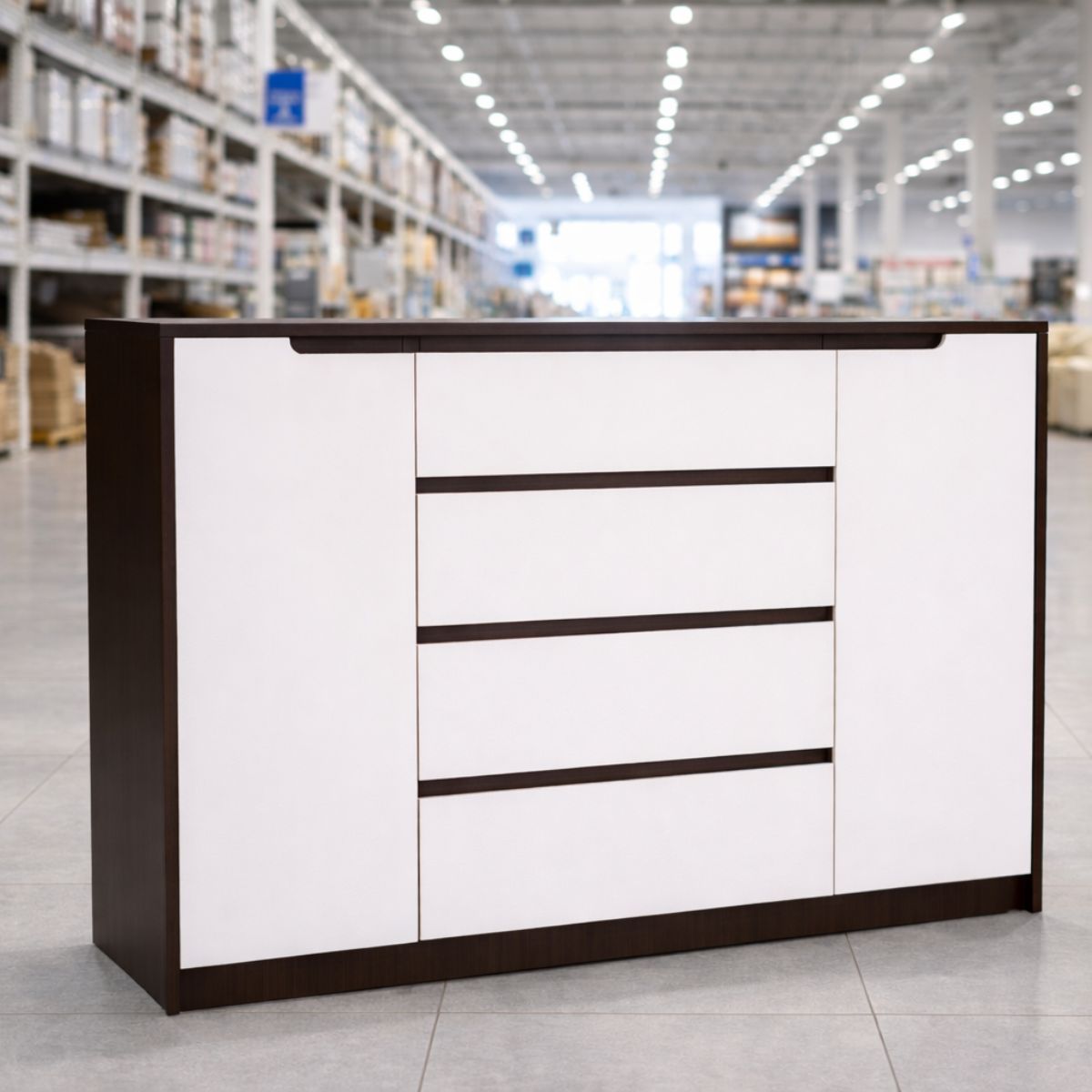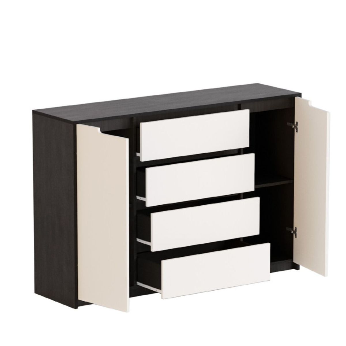 Комод М-3 з 4 шухлядами та 2 тумбами 140×38×98 см, венге темний / білий