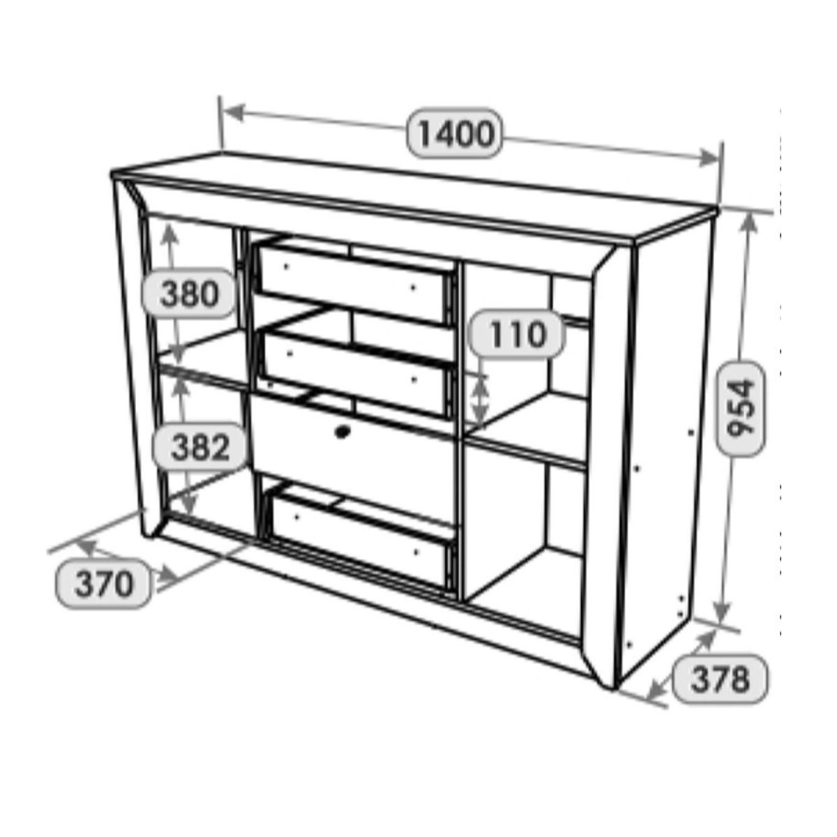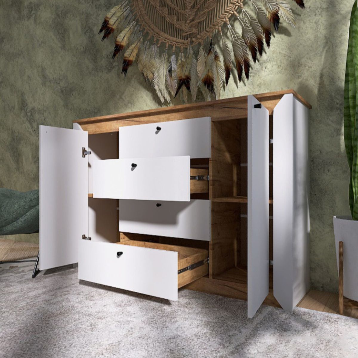 Комод оснащений 4 висувними шухлядами на телескопічних напрямних,