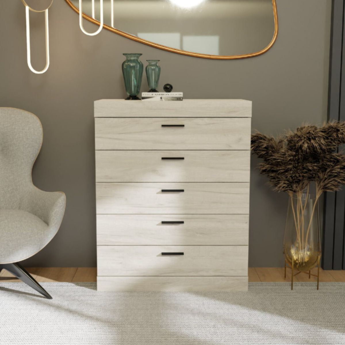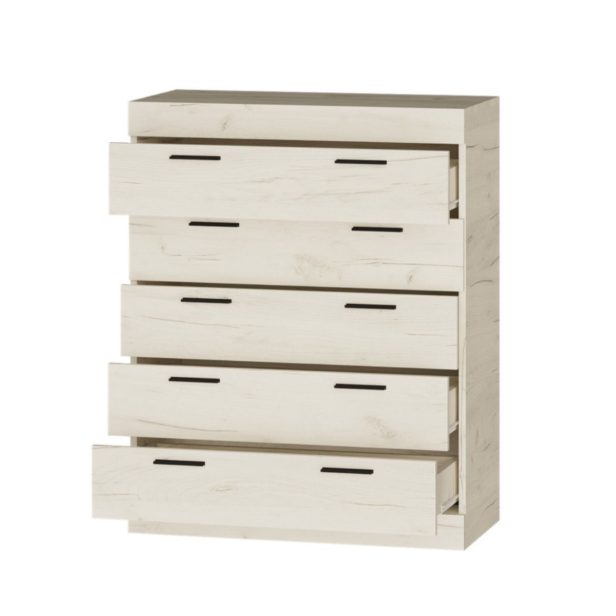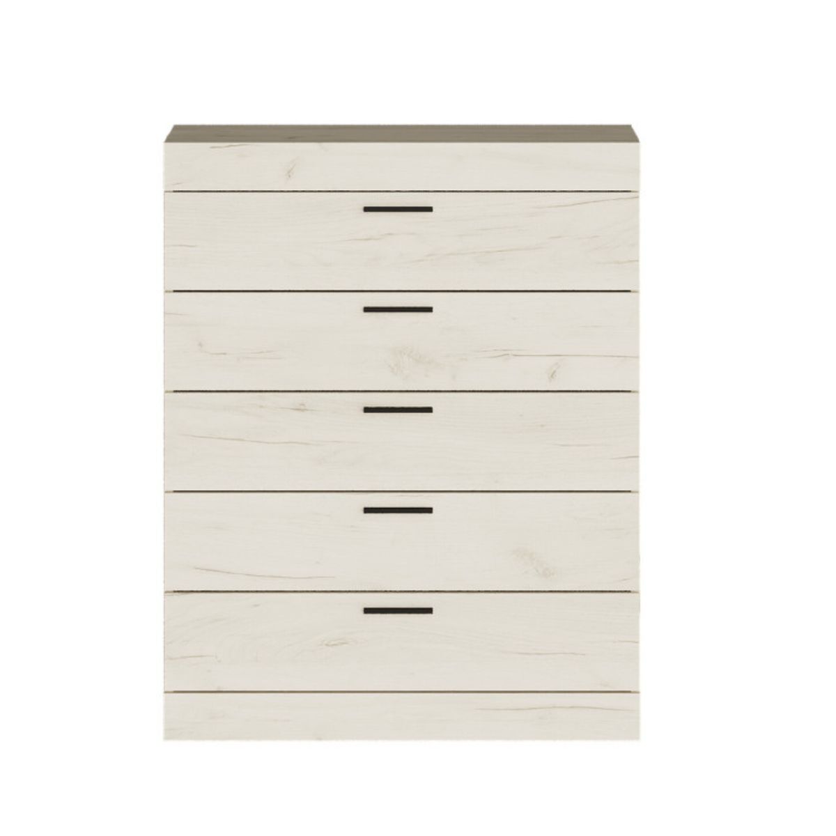 Комод С-2 з 5 шухлядами, 80 × 38 × 100,5 см, дуб крафт білий