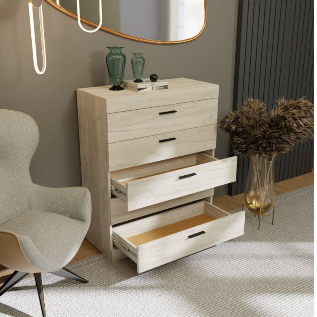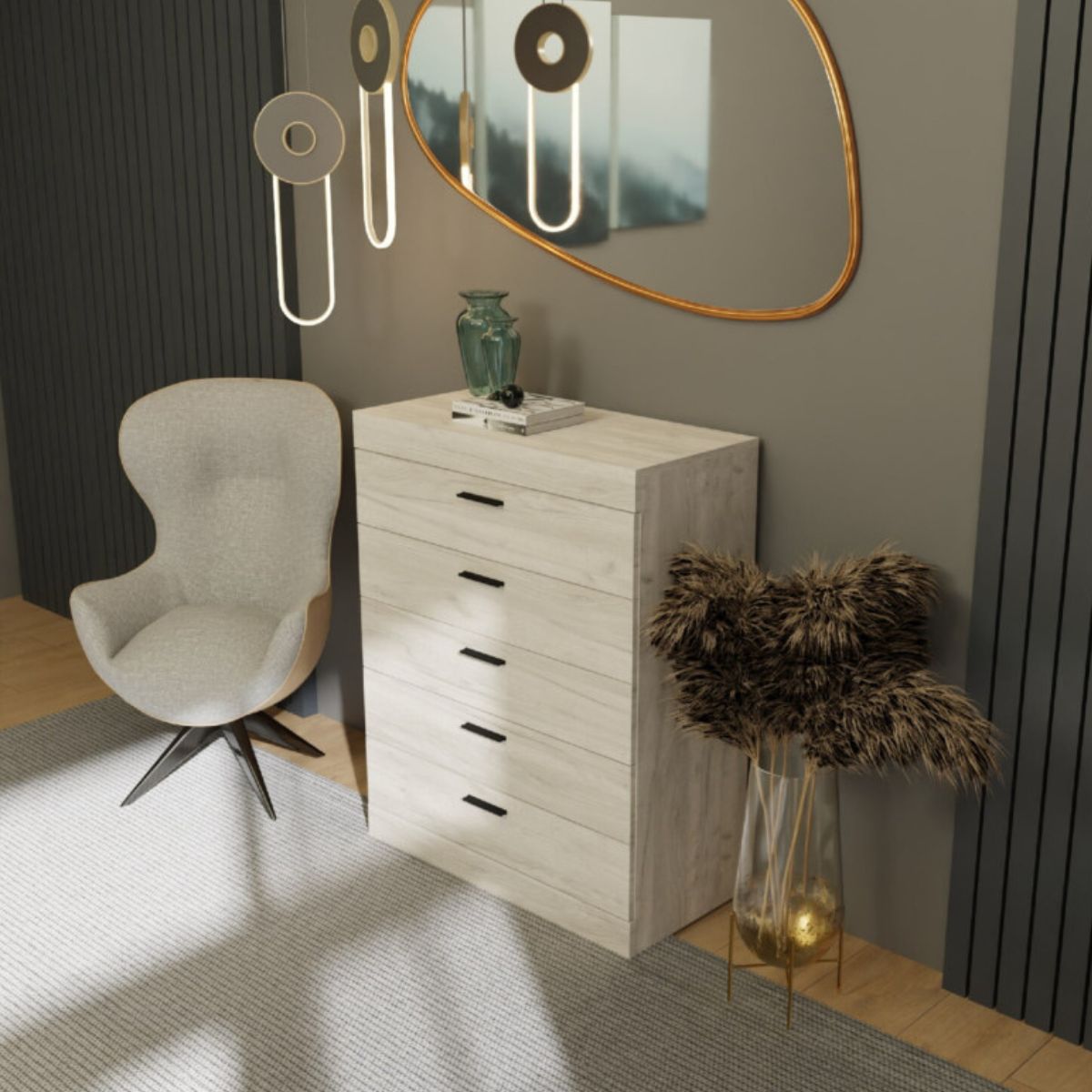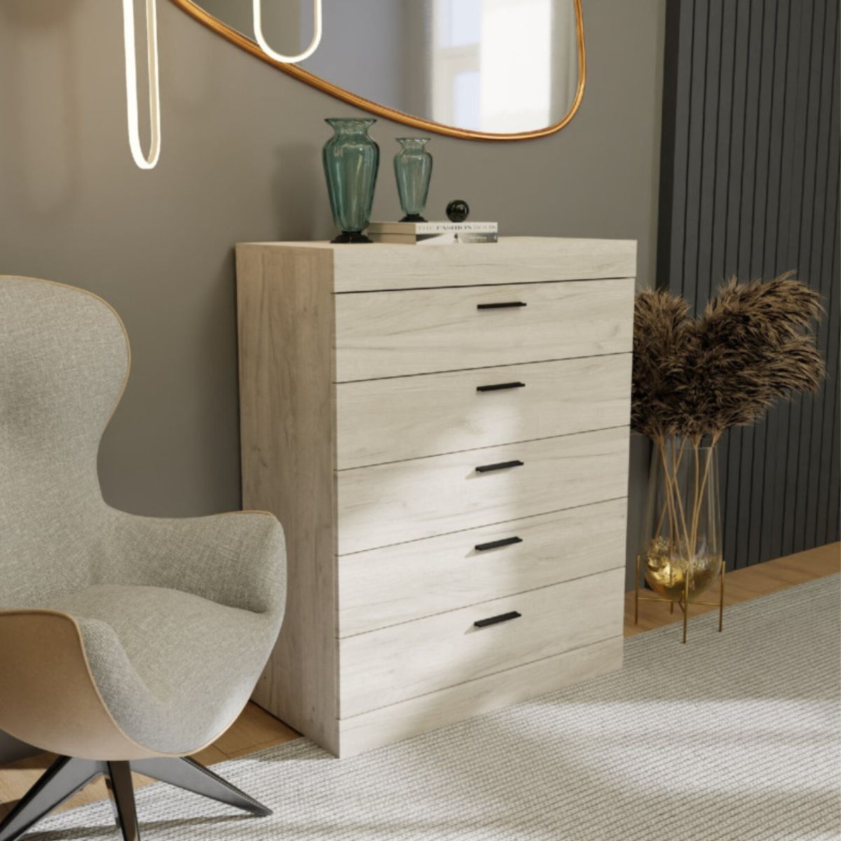 Комод С-2 з 5 шухлядами, 80 × 38 × 100,5 см, дуб крафт білий