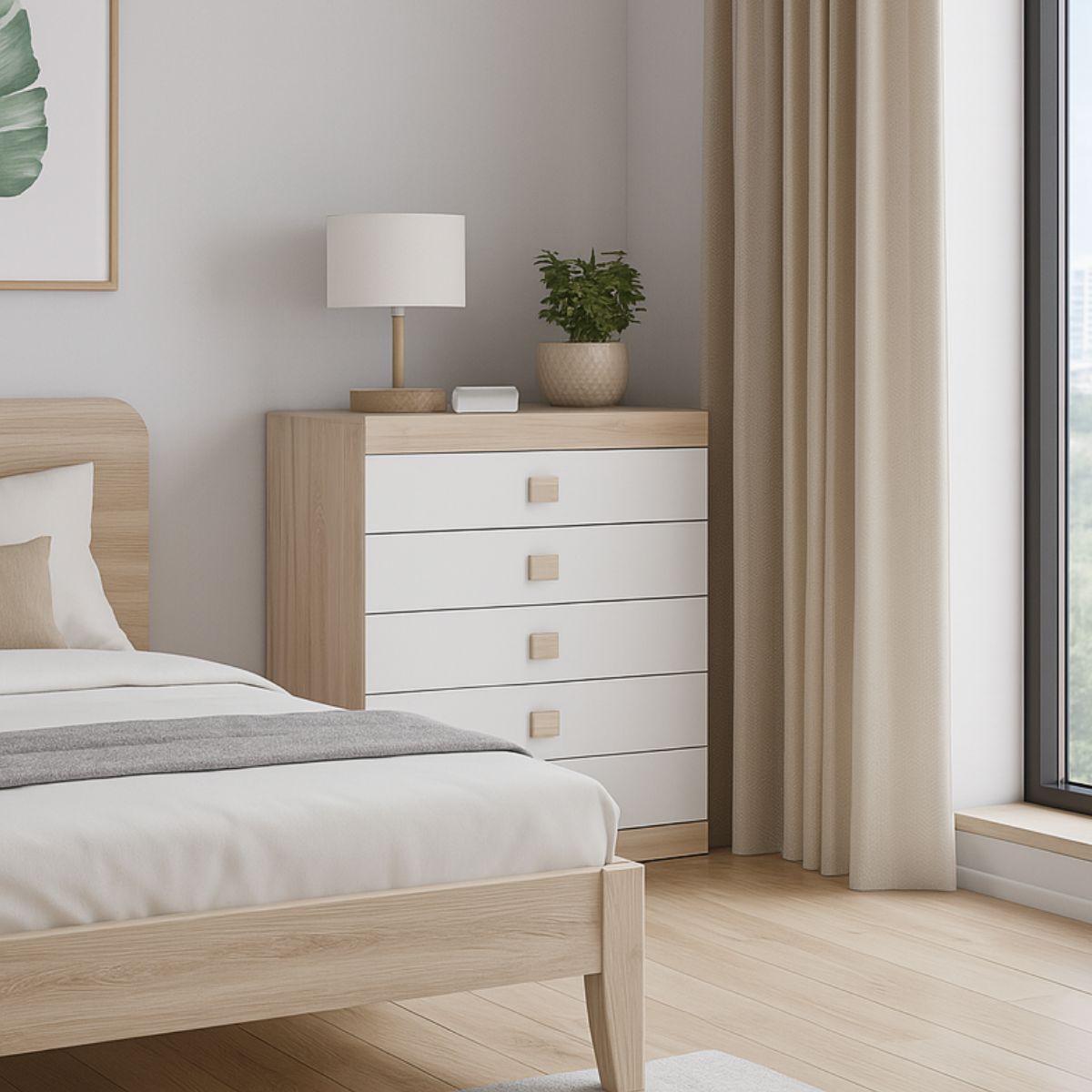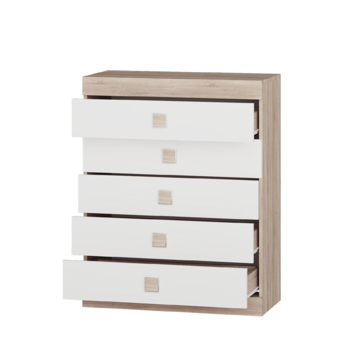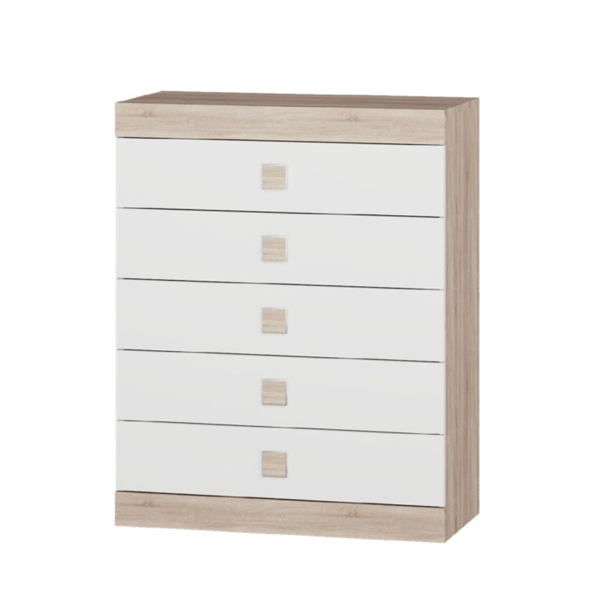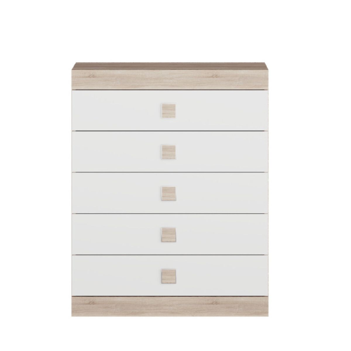Комод С-2 з 5 шухлядами, 80 × 38 × 100,5 см, дуб сонома / білий