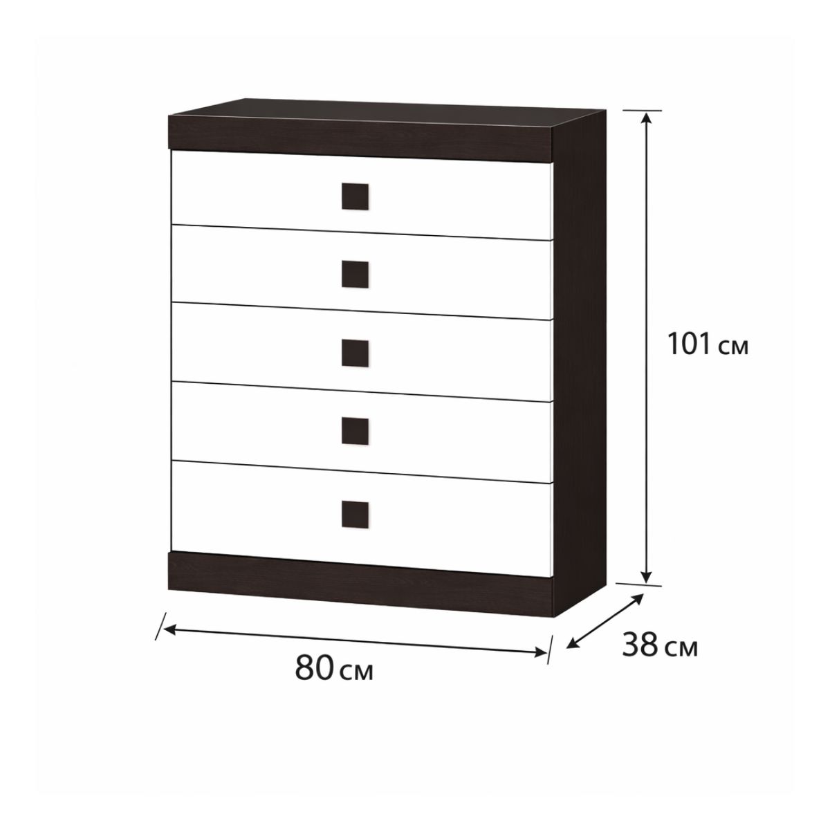 Комод С-2 з 5 шухлядами 80×38×100,5 см, венге з білими фасадами