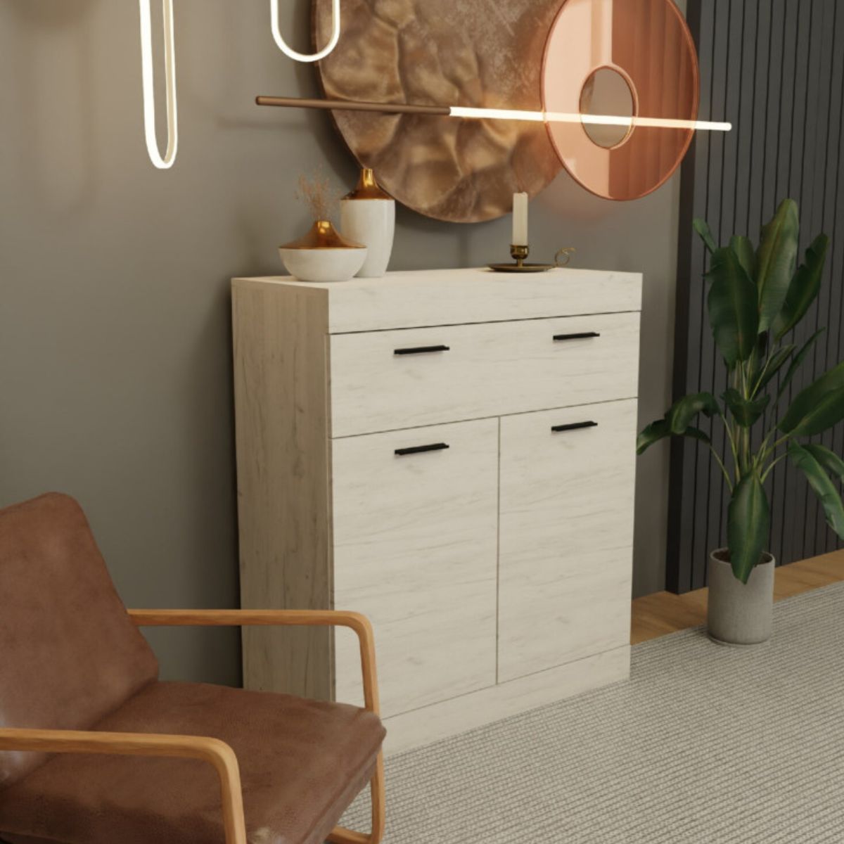 Завдяки світлому відтінку дуб крафт білий та лаконічному дизайну,