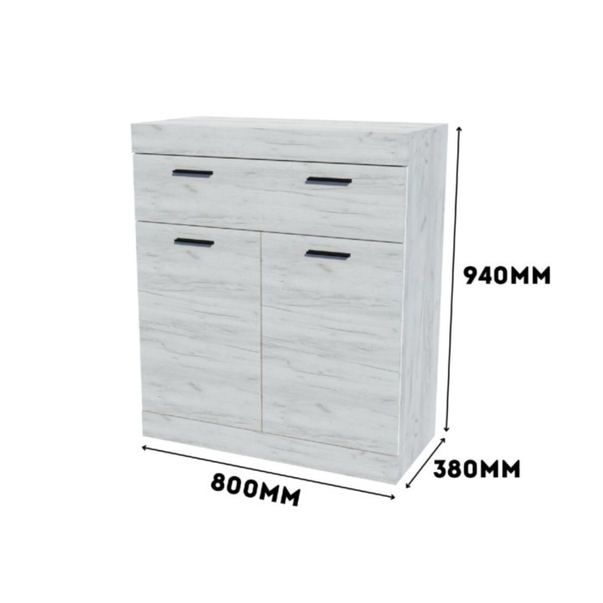 Комод С-4 з 1 шухлядою та 2 тумбами, 80 × 38 × 93 см, дуб крафт білий