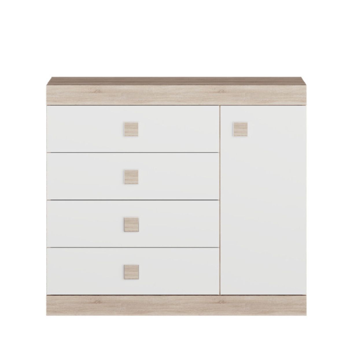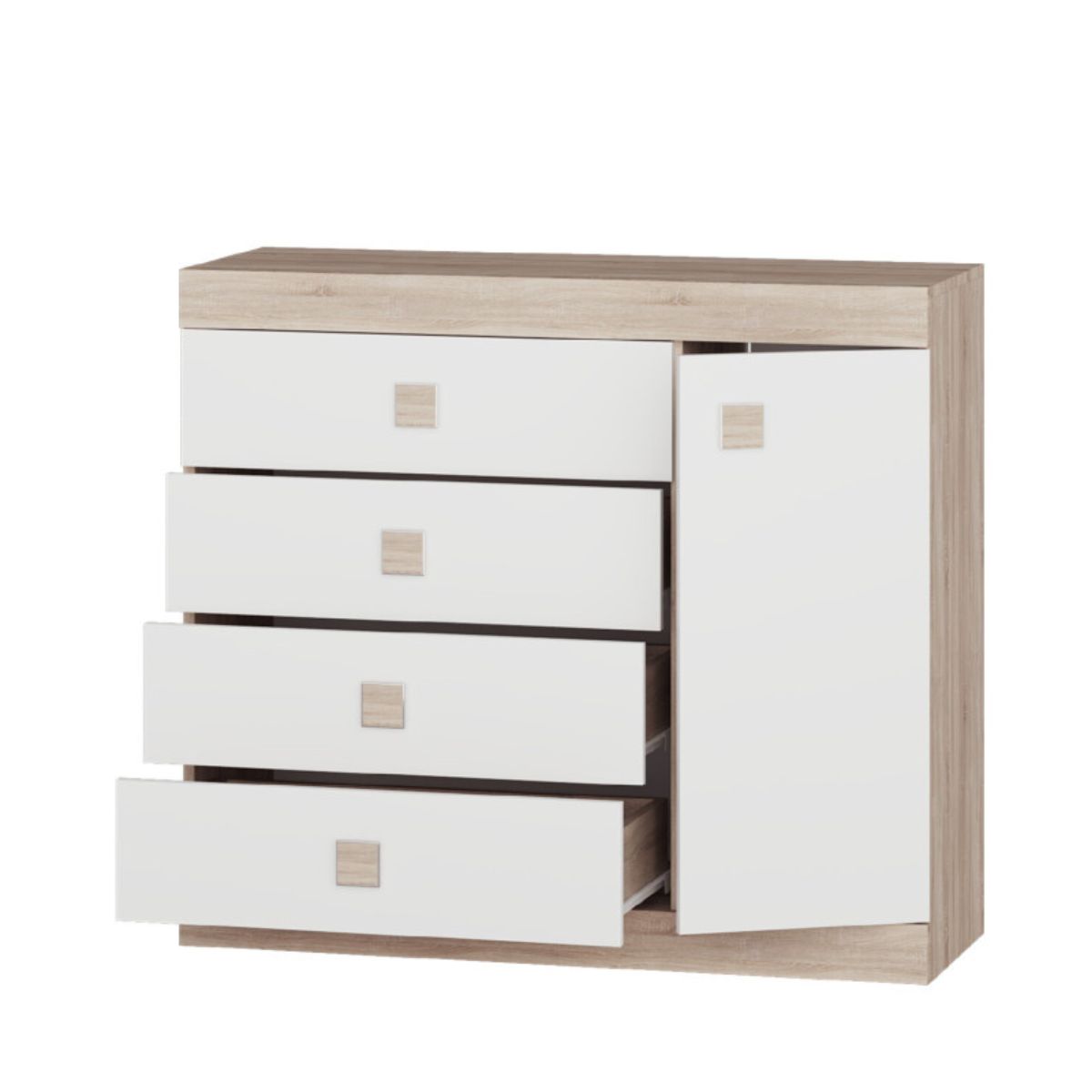 Комод С-5 з 4 шухлядами та тумбою 105×38×93 см, дуб сонома з білими фасадами