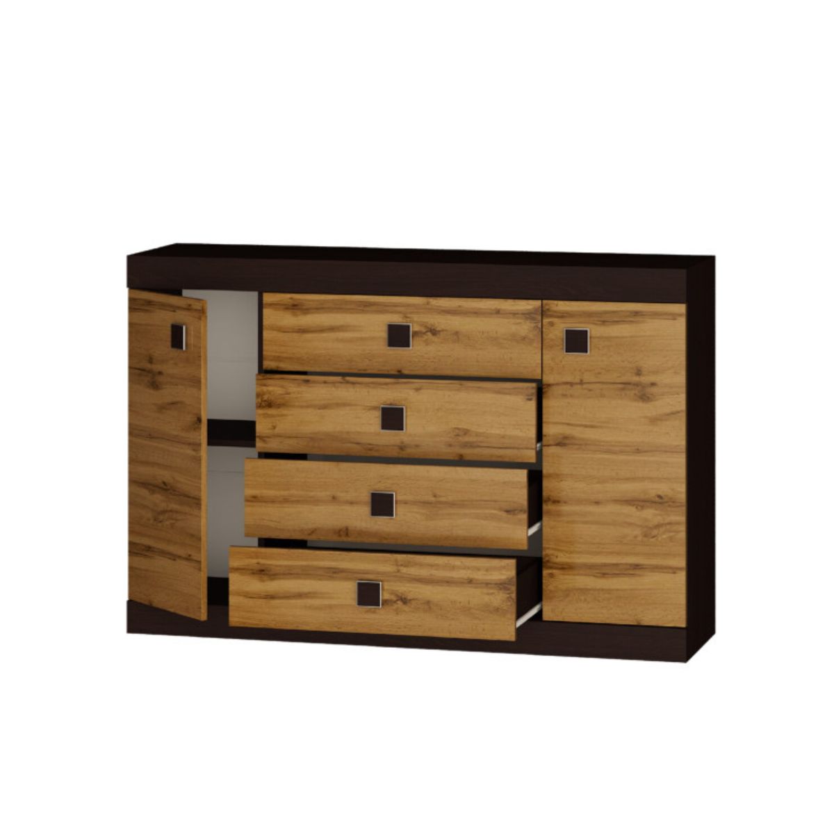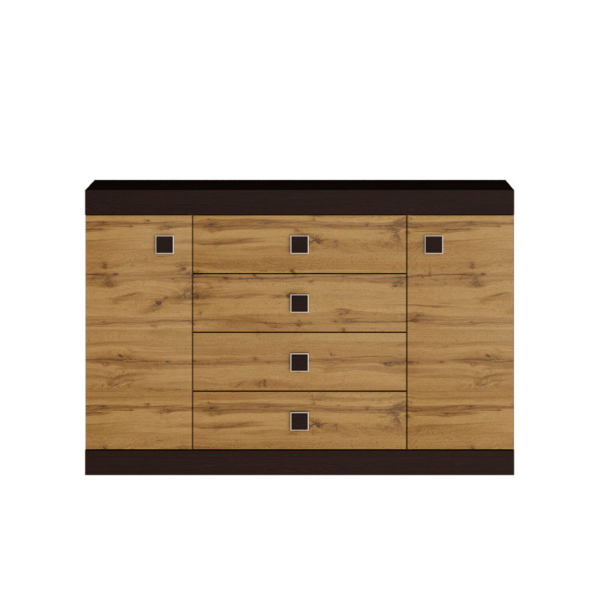 Комод С-8 з 4 шухлядами та двома тумбами 140×38×93 см, венге з фасадами дуб крафт золотий