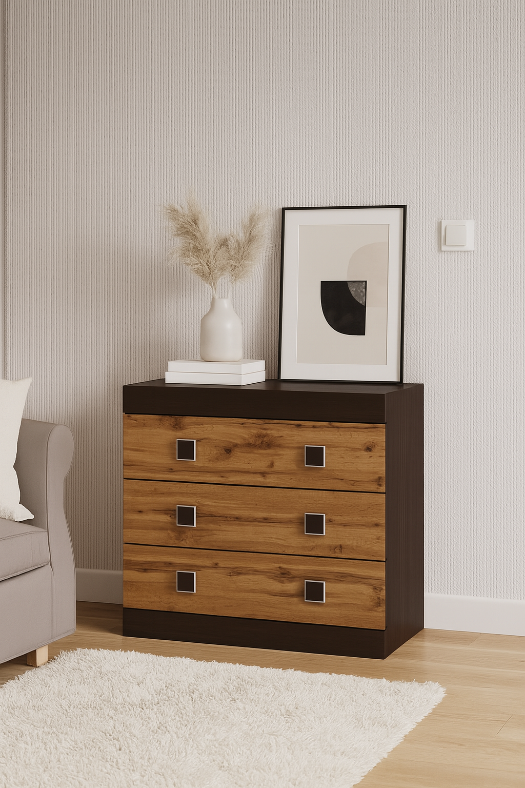 - ✅ Має три висувні шухляди для зручного зберігання одягу, постільної білизни, документів або дрібниць