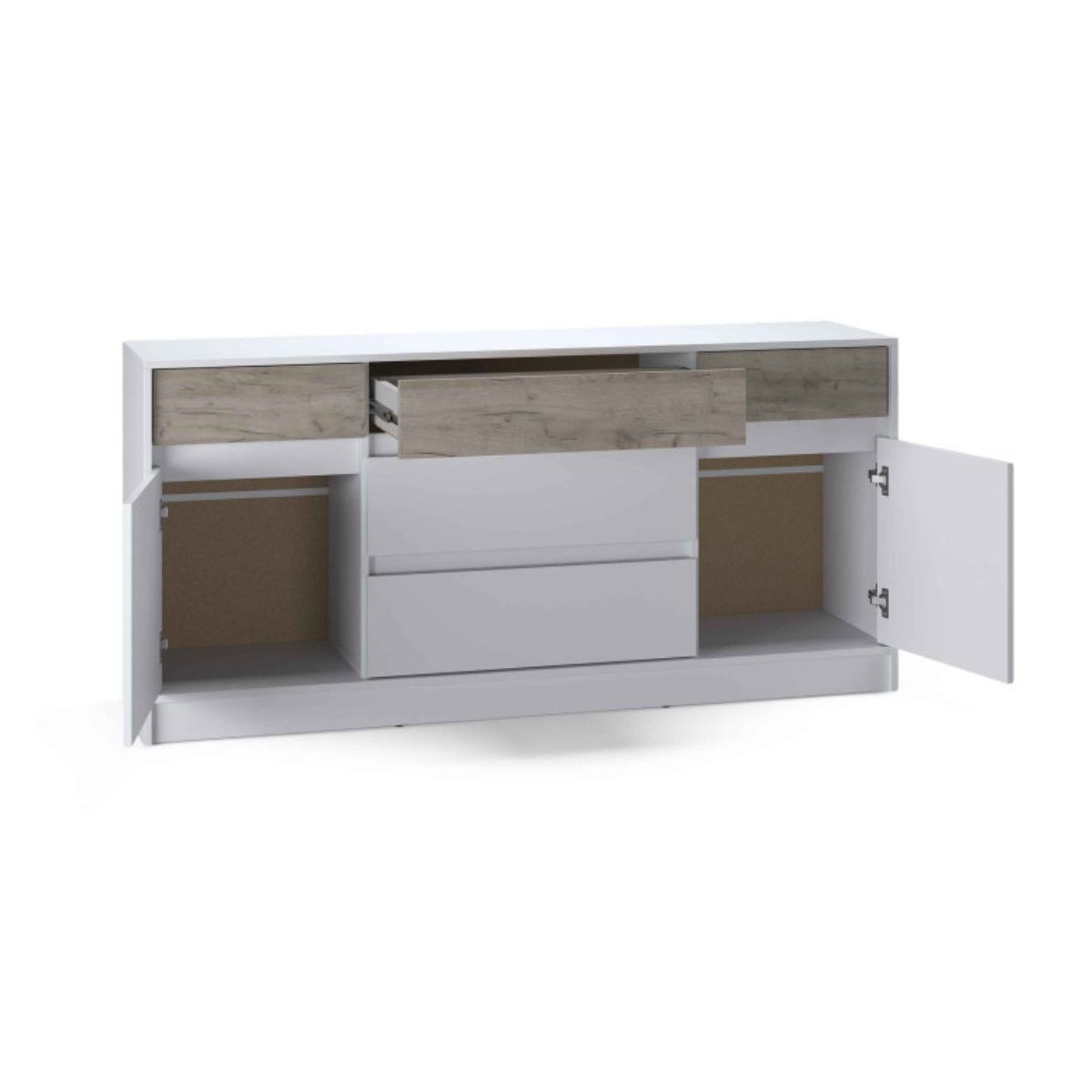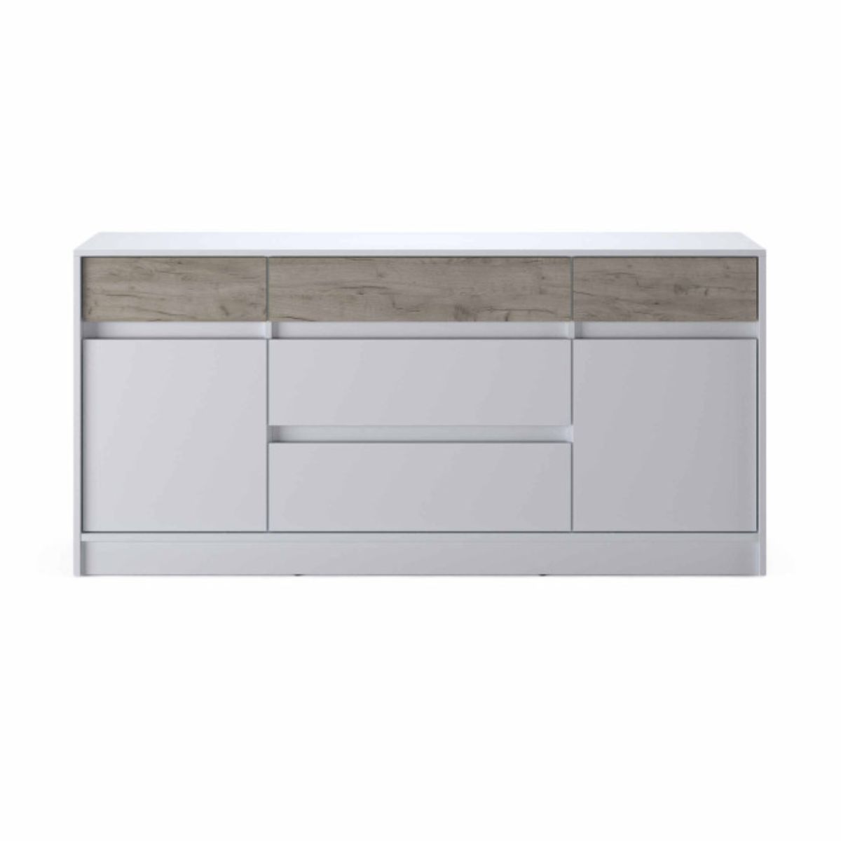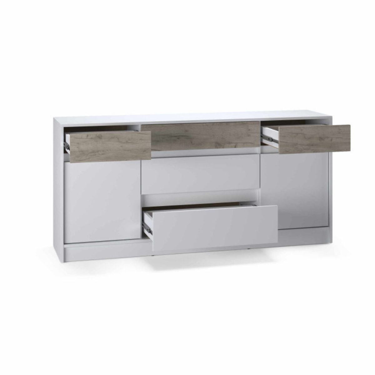 Комод СТ-1 без ручок з 5 шухлядами та 2 тумбами 160×39×76 см, білий / крафт сірий