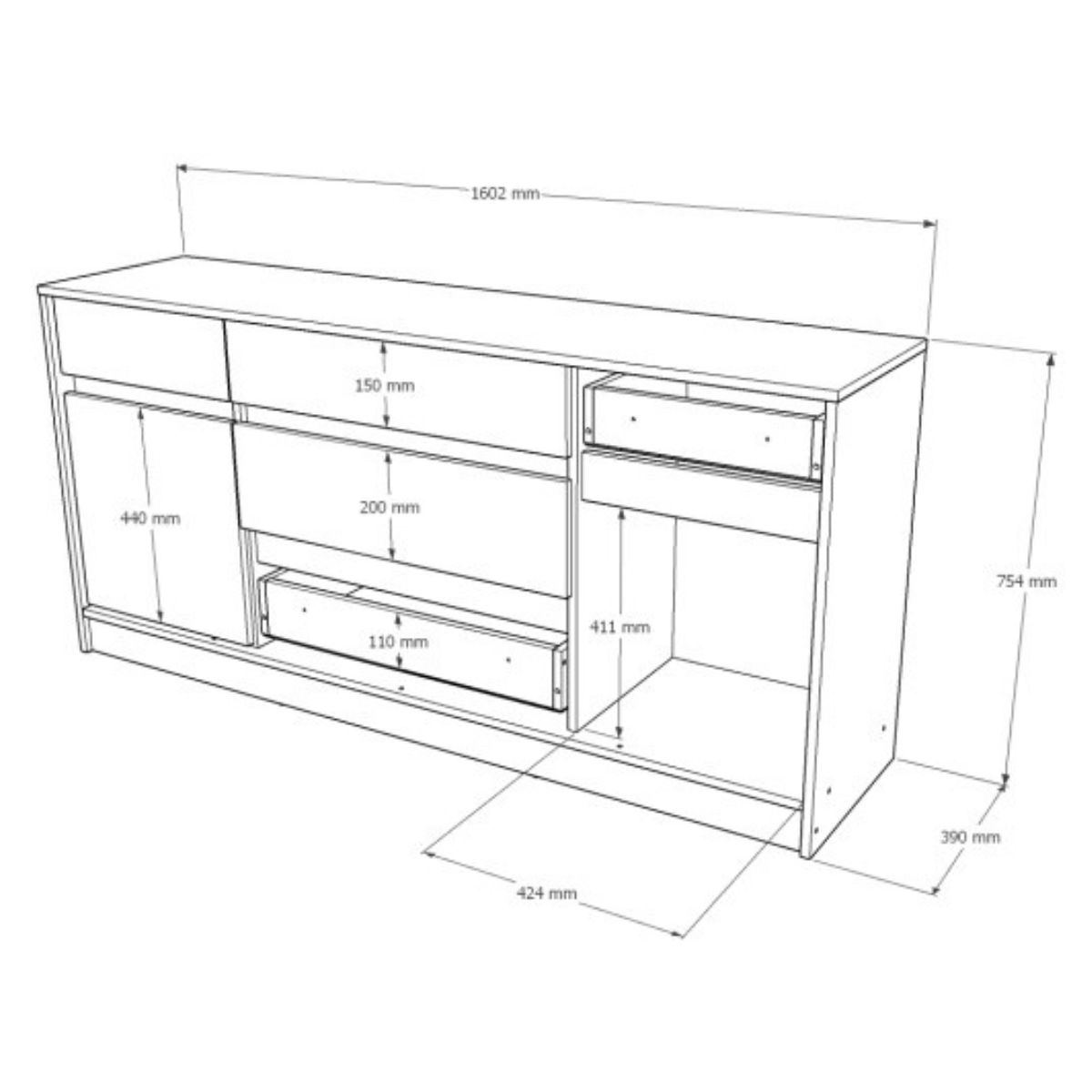 Комод оснащений 5 висувними шухлядами на телескопічних напрямних,