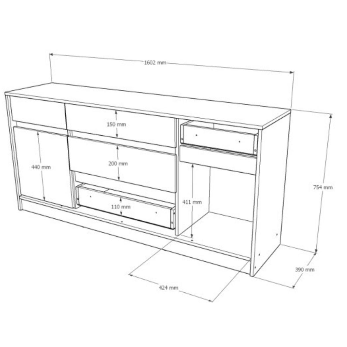 Комод СТ-1 без ручок призначений для зберігання одягу, текстилю, документів