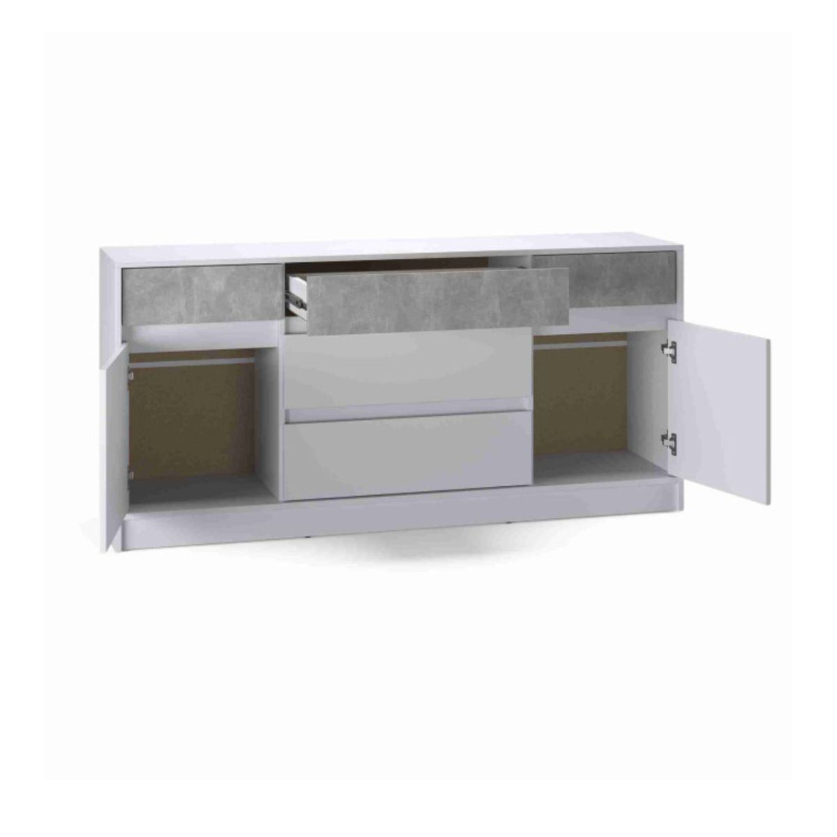 Комод СТ-1 без ручок з 5 шухлядами та 2 тумбами 160×39×76 см, білий з декоративними вставками бетон