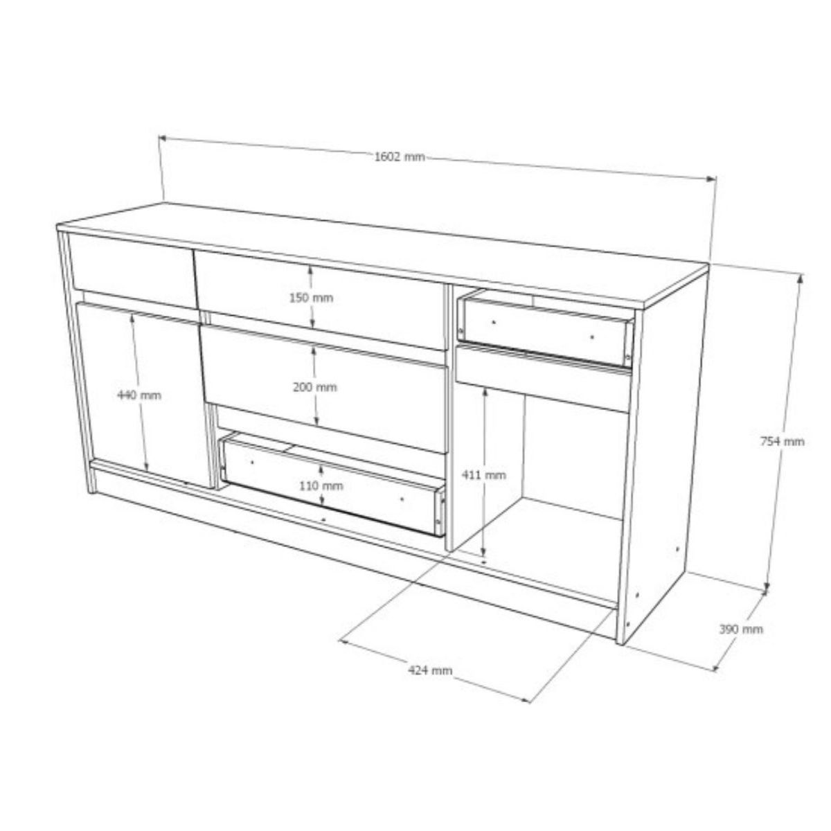 Комод оснащений 5 висувними шухлядами на телескопічних напрямних,