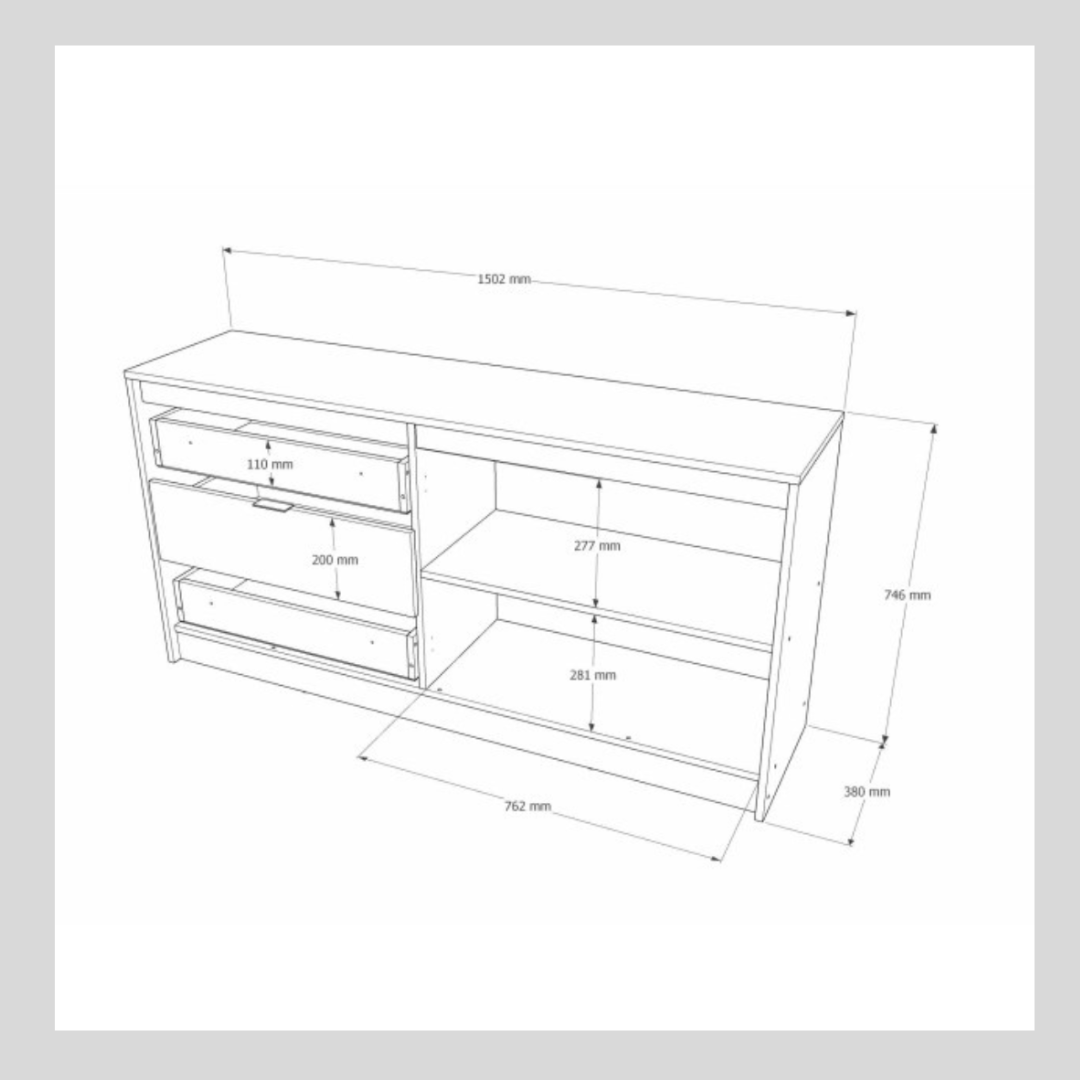 ✅ Модель оснащена місткими шухлядами, які забезпечують достатньо місця для зберігання одягу, білизни, документів чи інших побутових речей. Шухляди висуваються плавно та безшумно завдяки якісним телескопічним направляючим. Верхня частина комоду також може використовуватися як додаткова полиця для декору, фоторамок чи косметики.