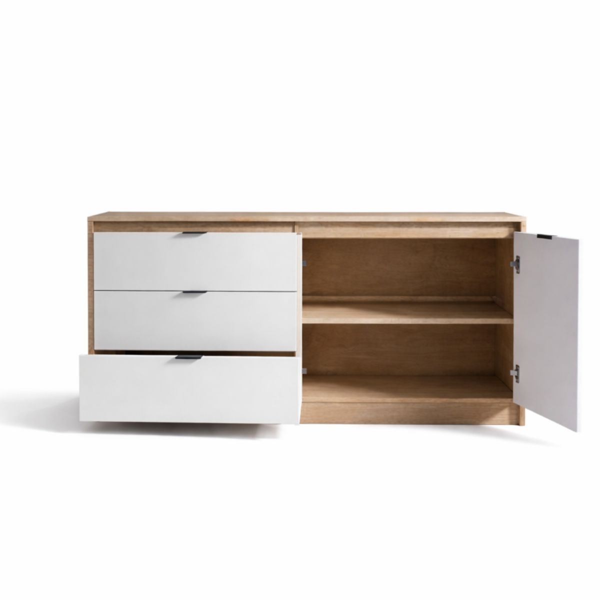Комод СТ-2 з 2 шухлядами та двома тумбами 150×38×75 см, дуб сонома з білими фасадами