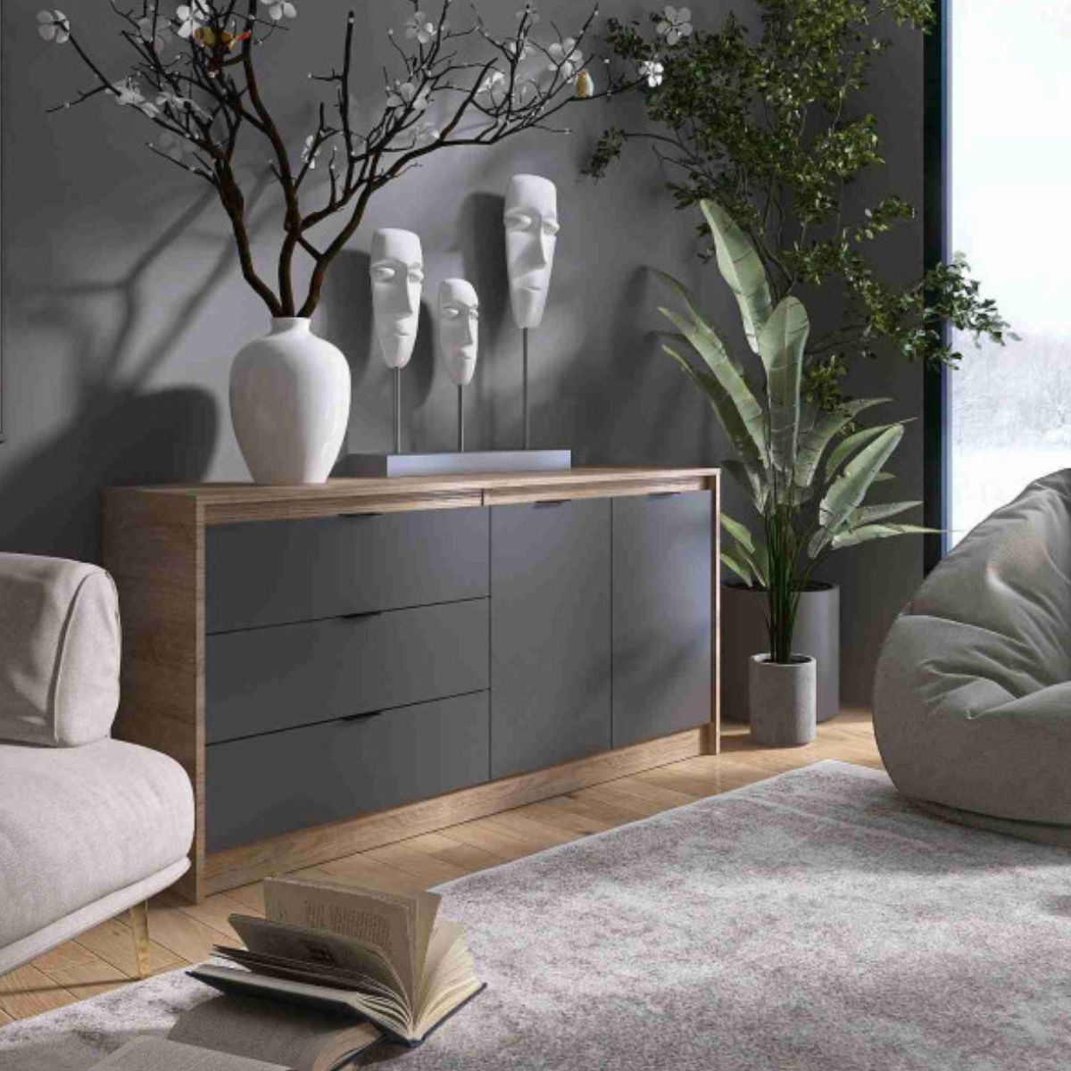 Контрастне поєднання кольорів дуб сонома / графіт надає моделі виразного вигляду