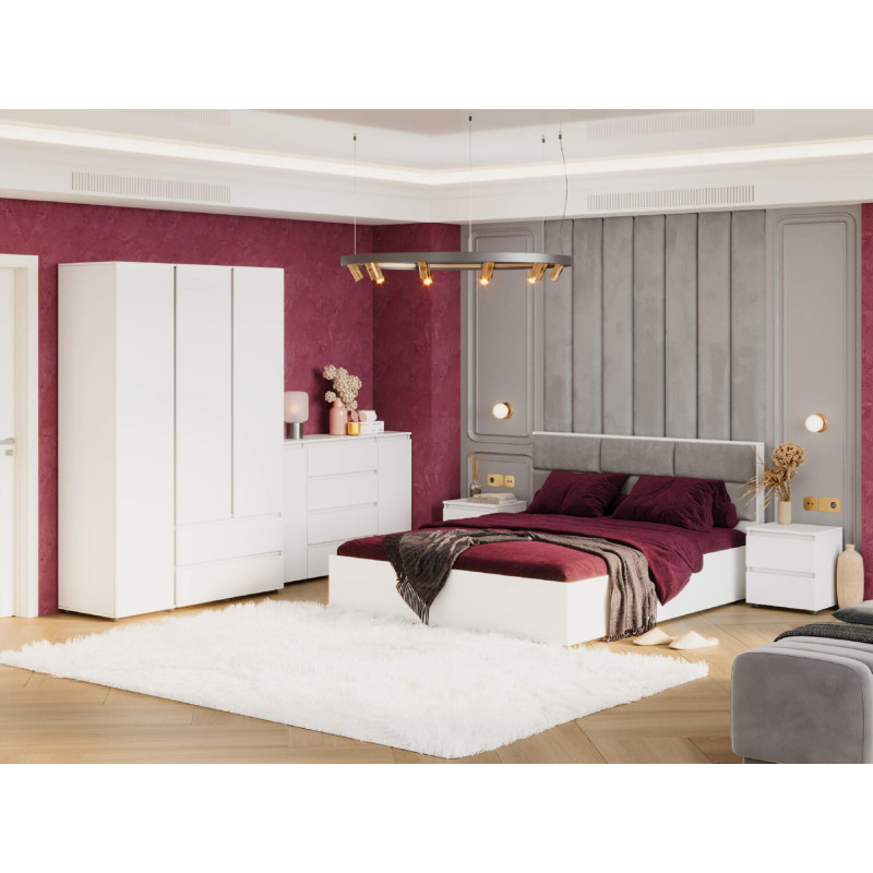 Спальний меблевий комплект Л-4 являє собою елегантне поєднання сучасного стилю і функціональності. Нейтральна колірна гамма комплекту дозволяє легко вписати його в будь-який інтер’єр. Матеріали, використані у виробництві, вирізняються високою якістю і довговічністю, що робить цей комплект відмінним вибором для вашої спальні.