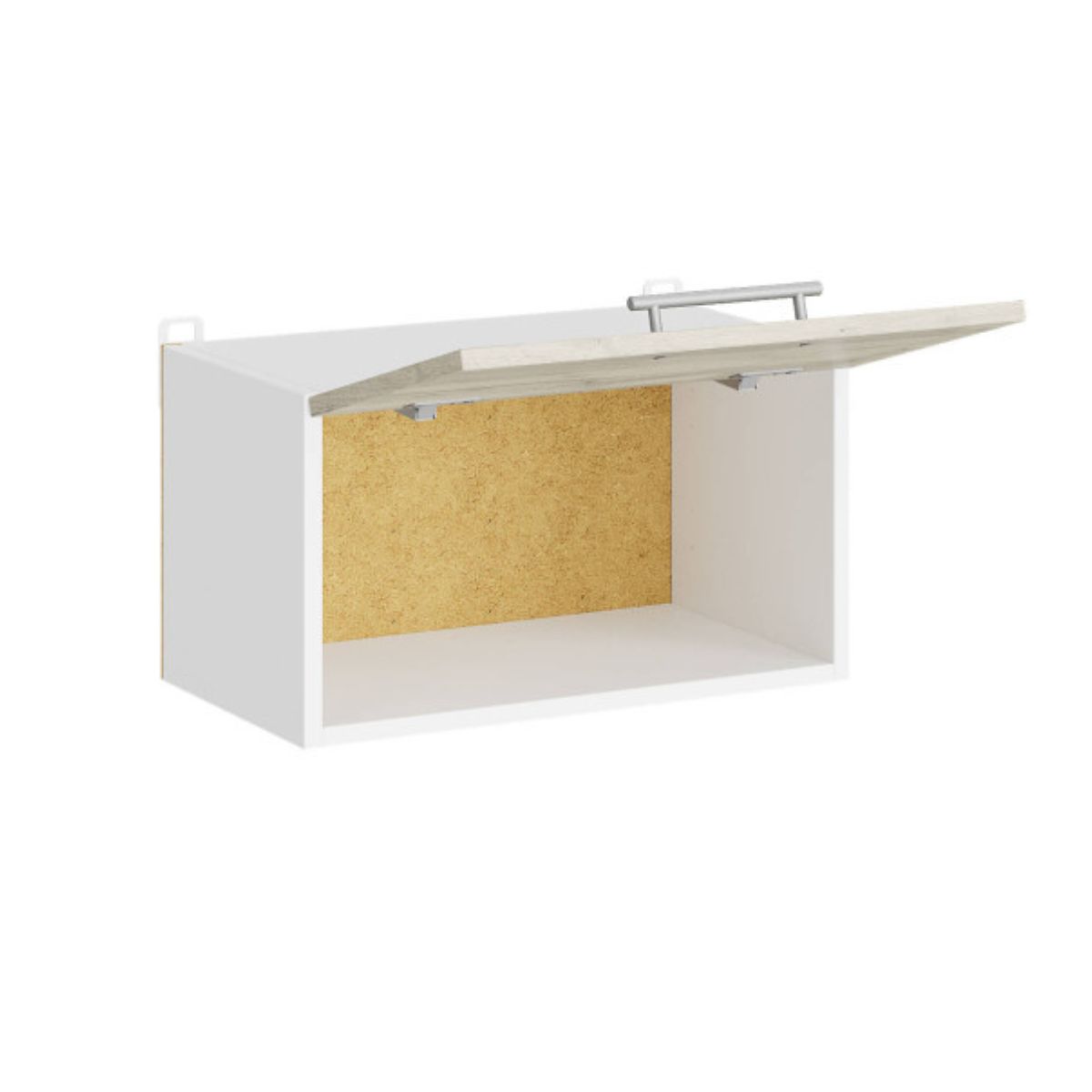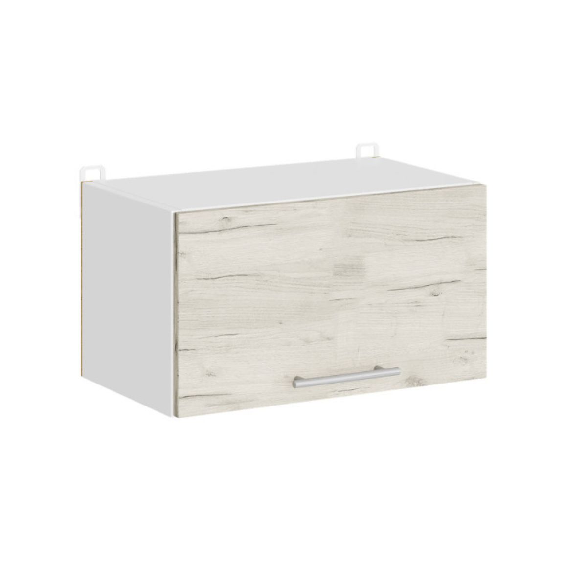 Модуль встановлюється у верхній частині кухонного гарнітура та гармонійно поєднується з кухонними меблями у кольорах білий та дуб крафт білий.