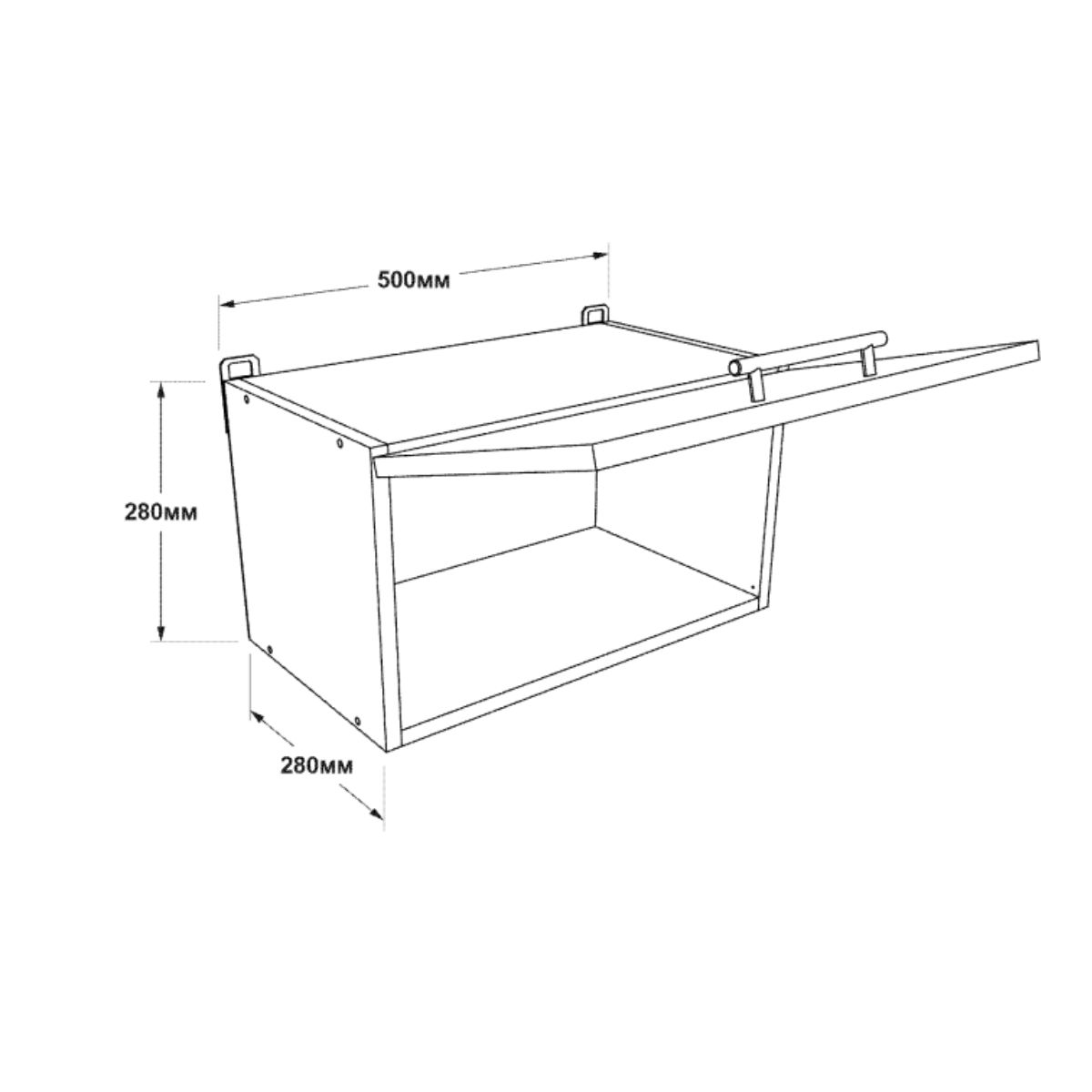 Конструкція шафи дозволяє зручно розмістити витяжку та забезпечує охайний вигляд кухонної зони. Такий модуль допомагає ефективно використовувати простір кухні та легко поєднується з іншими навісними елементами кухонних меблів.