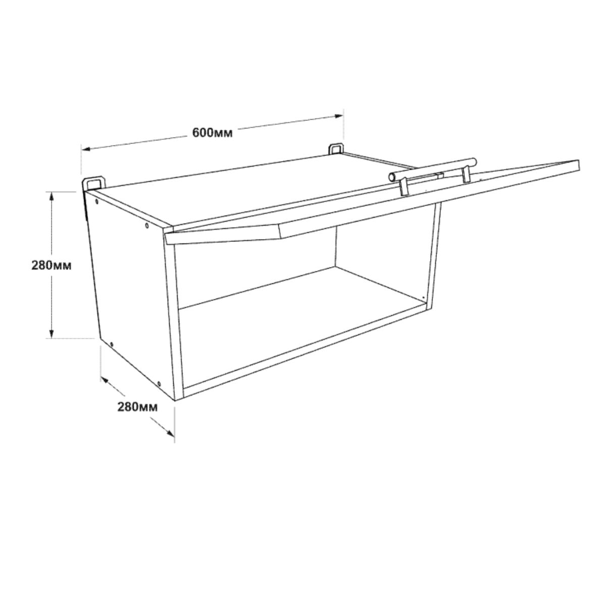 Конструкція шафи дозволяє зручно розмістити кухонну витяжку та забезпечує охайний вигляд кухонної зони. Такий модуль допомагає ефективно використовувати простір кухні та легко поєднується з іншими навісними елементами кухонних меблів.