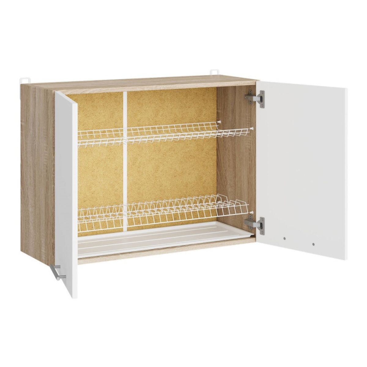 Кухонна навісна верхня шафа-сушарка для посуду 80×30×58 см, дуб сонома / білий