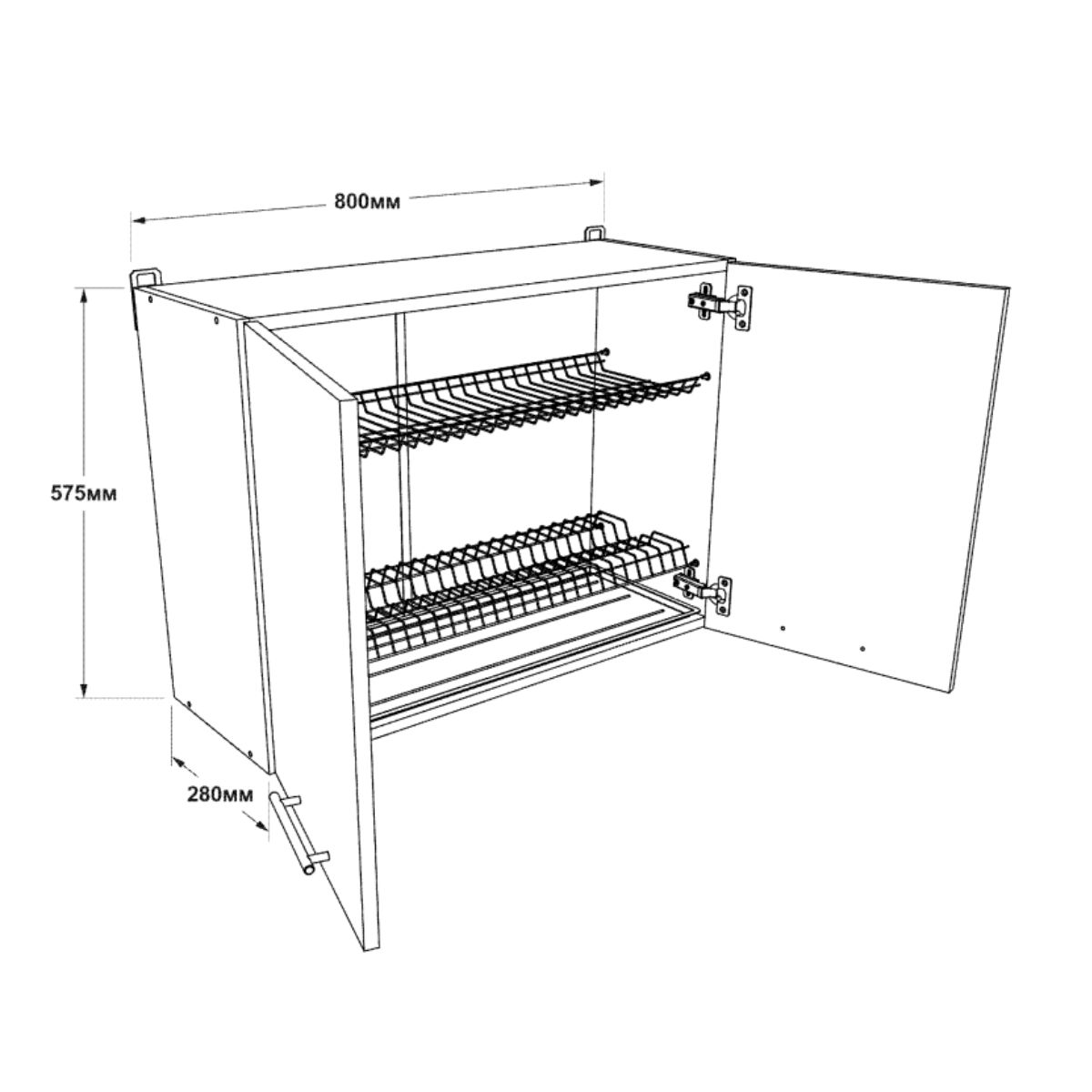 Конструкція шафи передбачає можливість встановлення сушарки для тарілок і чашок, що дозволяє зручно розміщувати посуд після миття та підтримувати порядок на кухні.