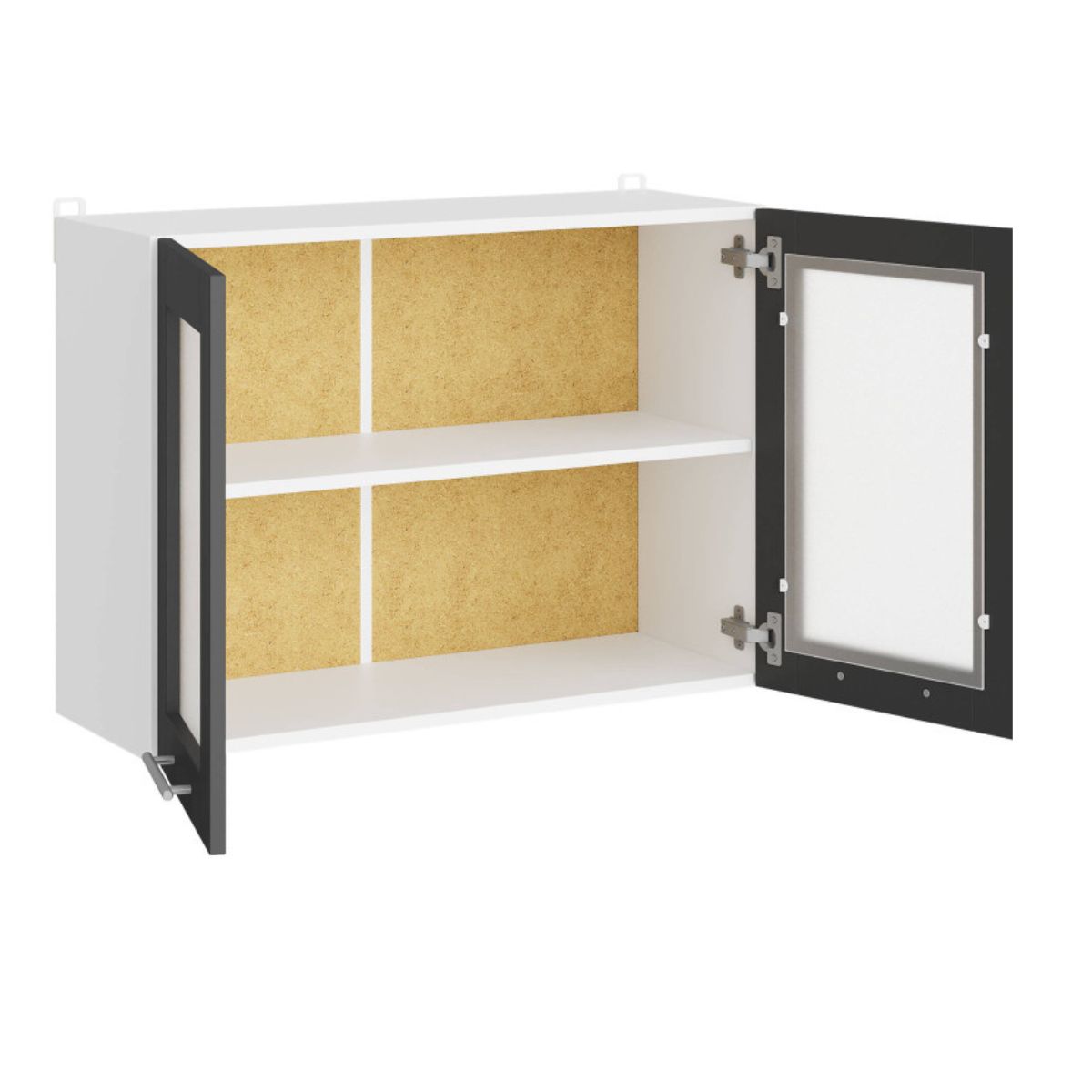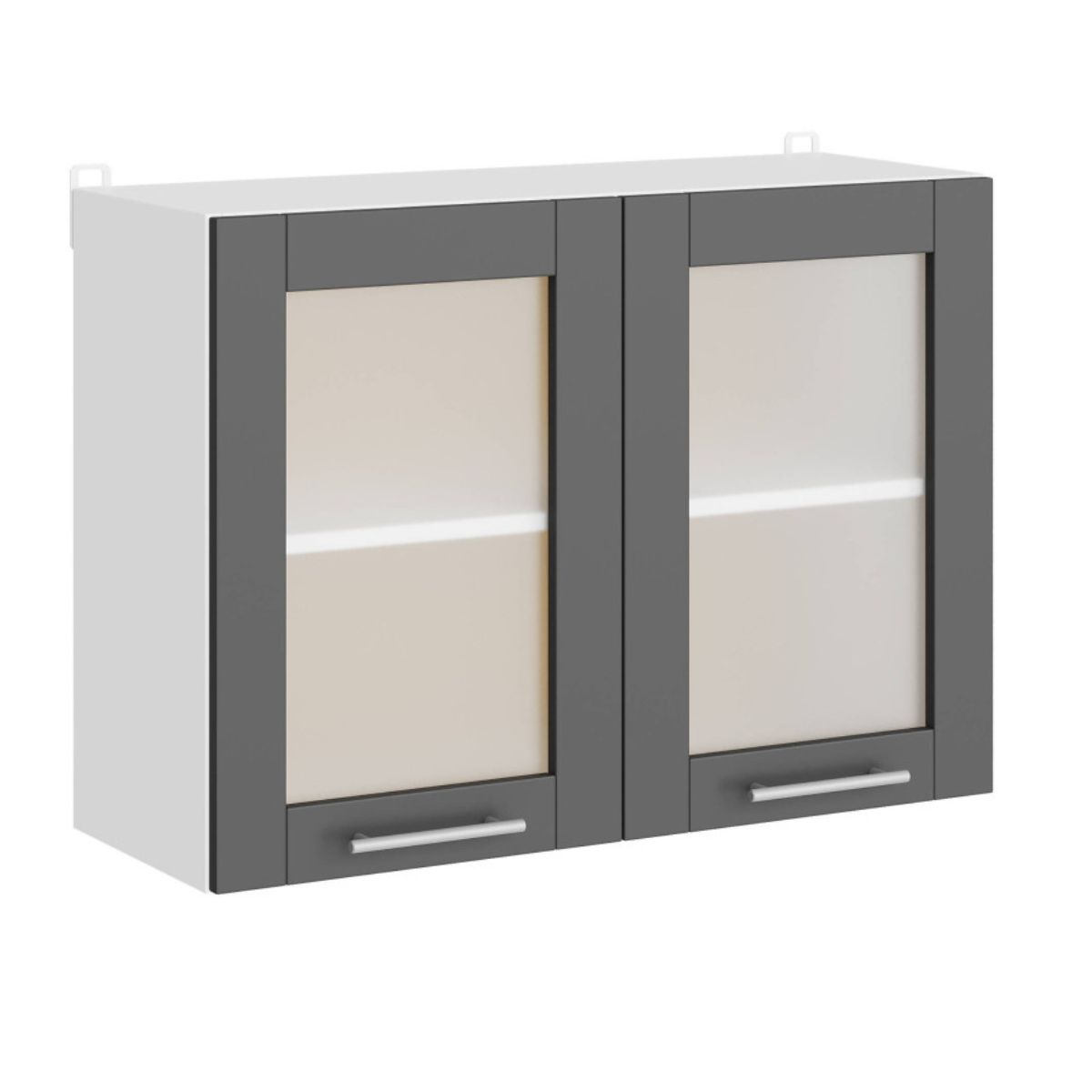 Кухонна навісна верхня шафа-вітрина зі склом використовується для зберігання посуду, чашок та кухонного приладдя у верхній частині кухонного гарнітура.