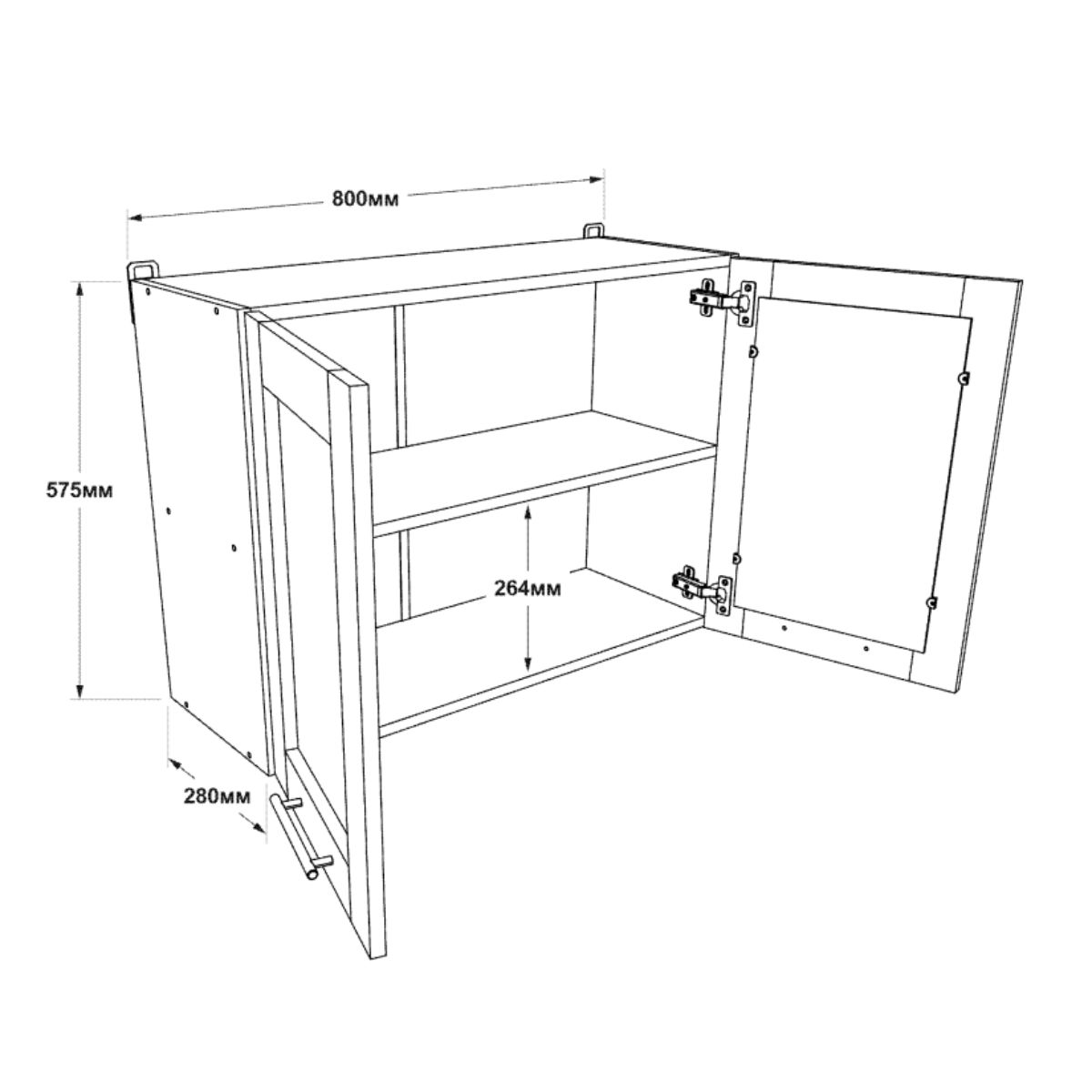 Модуль призначений для встановлення у верхній частині кухні та поєднується з меблями у кольорах білий та дуб крафт білий.