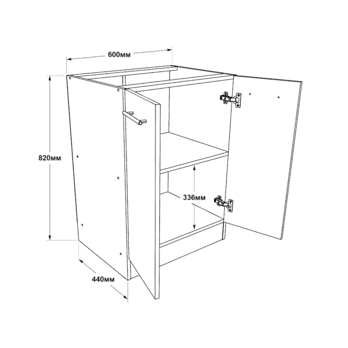 Закрита конструкція тумби з дверцятами дозволяє акуратно зберігати кухонні речі та підтримувати порядок на кухні. Такий модуль допомагає ефективно використовувати простір кухні та забезпечує зручний доступ до вмісту.