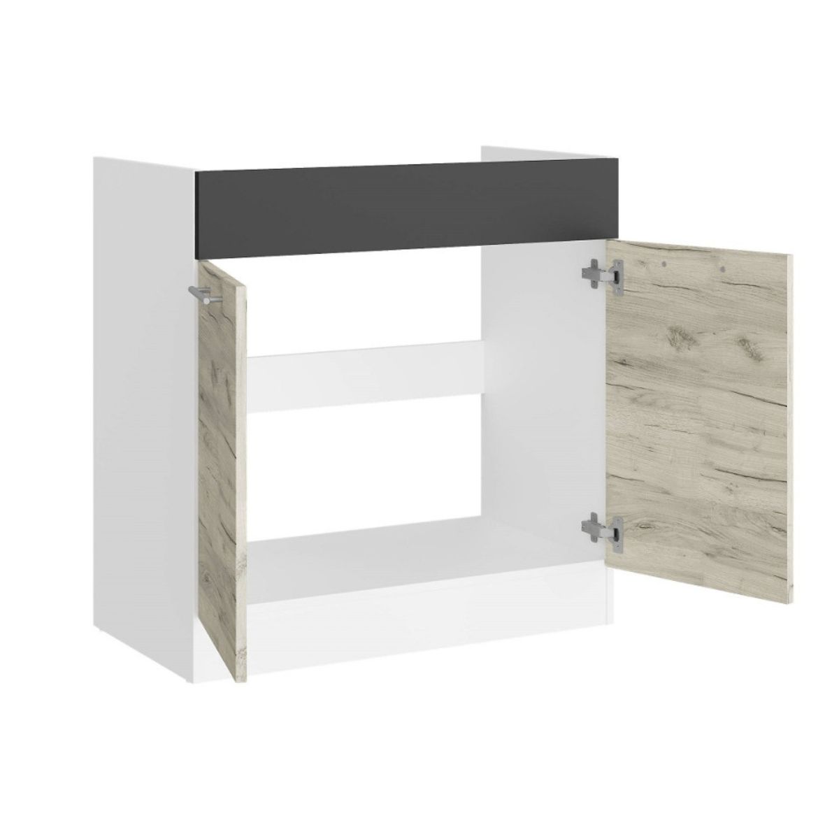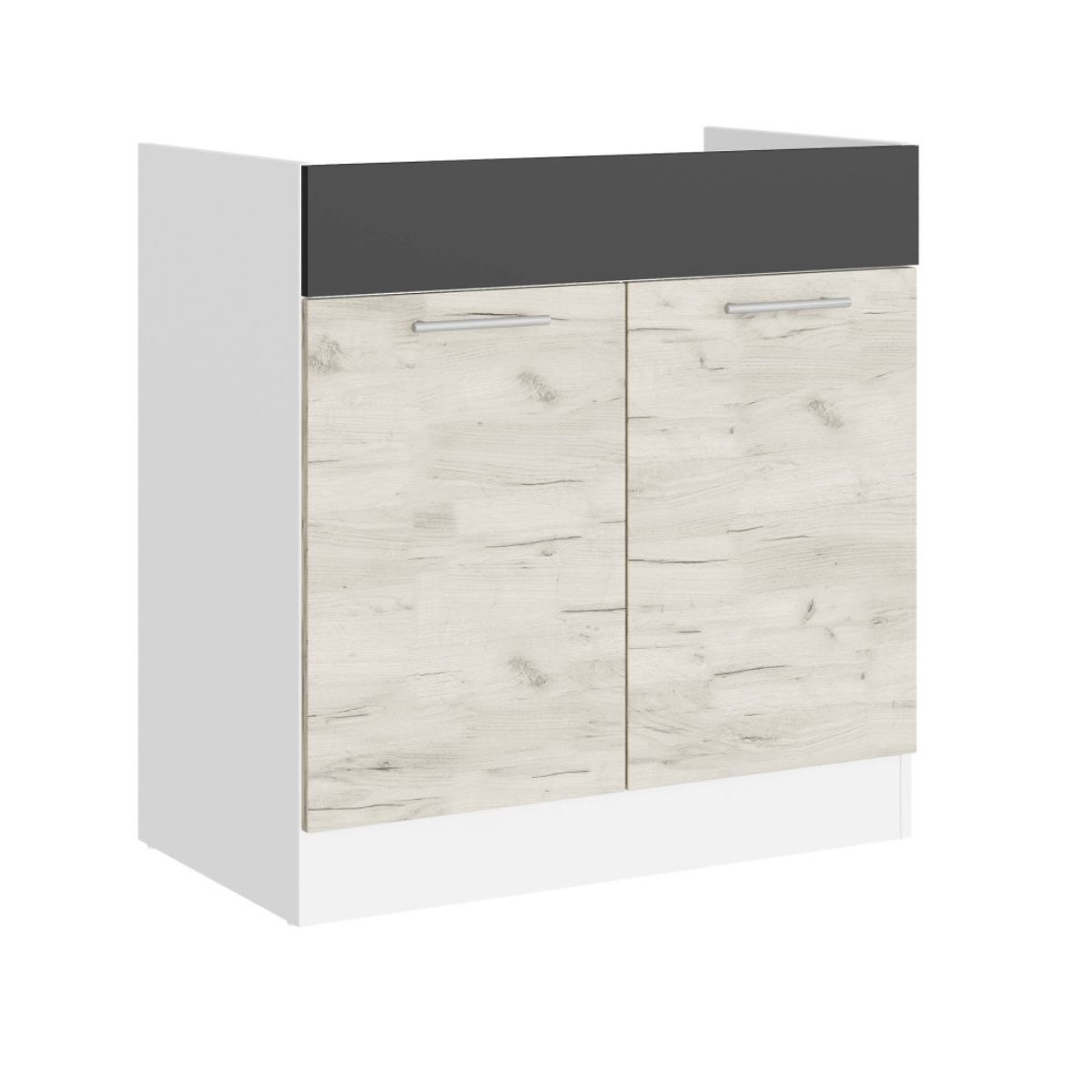 Кухонна нижня тумба під мийку 80×46×82 см без стільниці, білий / дуб крафт білий