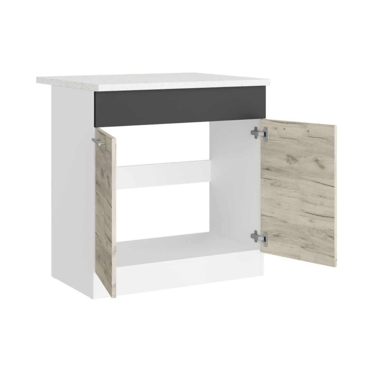 Кухонна нижня тумба під мийку 80×46×82 см зі стільницею, білий / дуб крафт білийКухонна нижня тумба під мийку 80×46×82 см зі стільницею, білий / дуб крафт білий