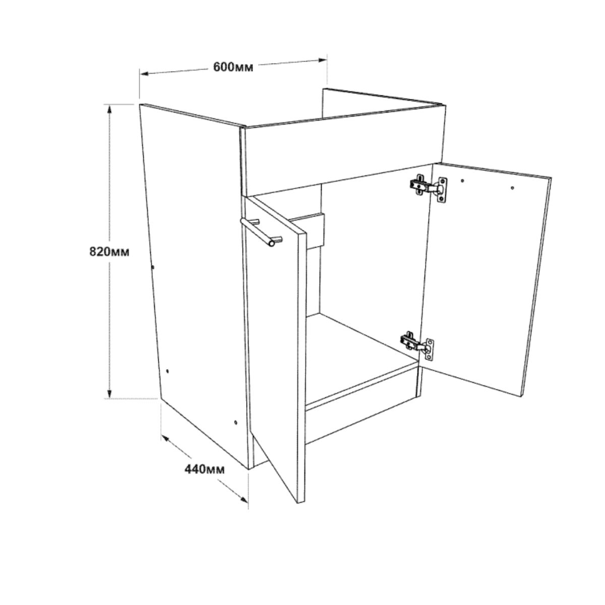 Конструкція тумби передбачає місце для встановлення кухонної мийки та підключення комунікацій. Такий модуль допомагає ефективно використовувати простір кухні та створює зручну зону для миття посуду.