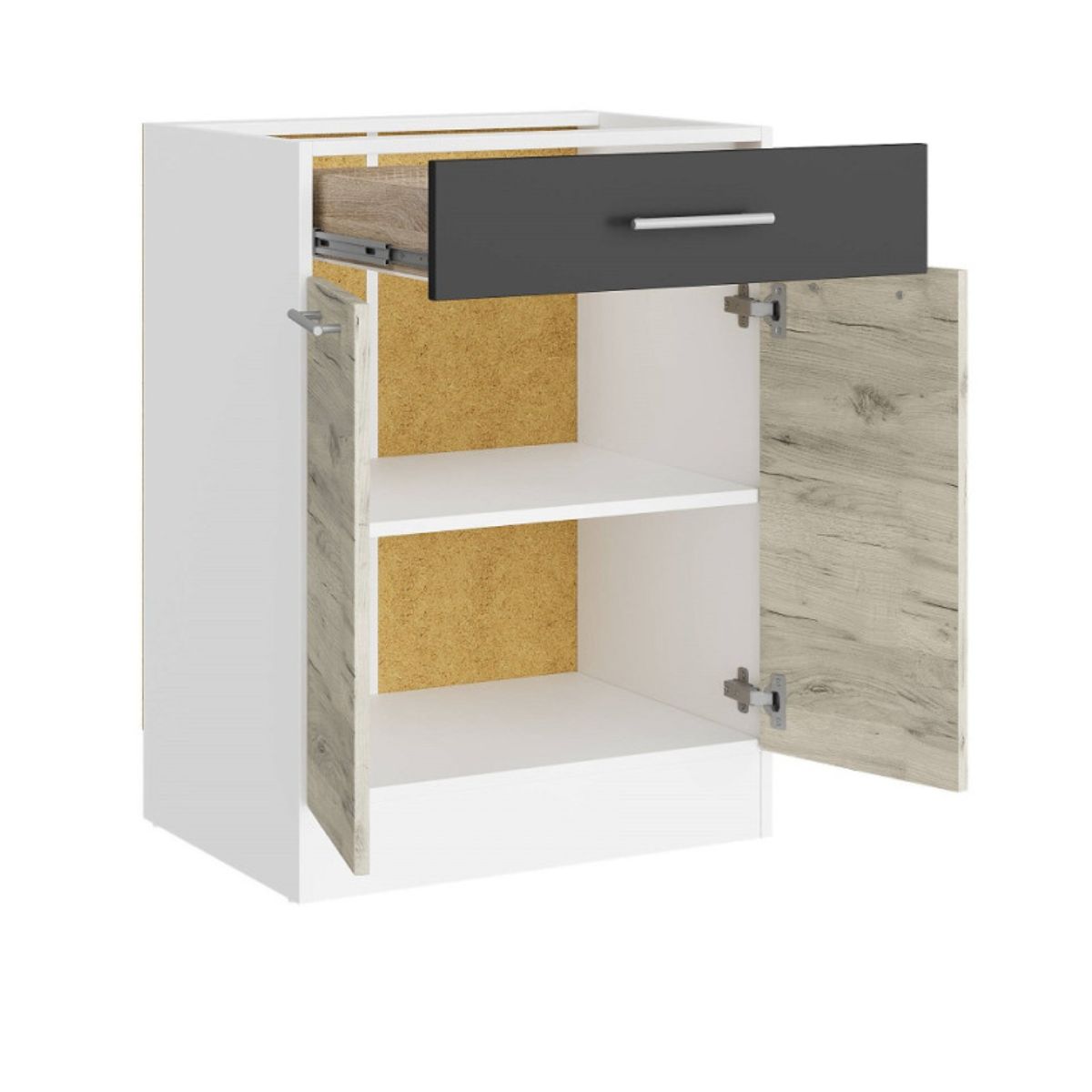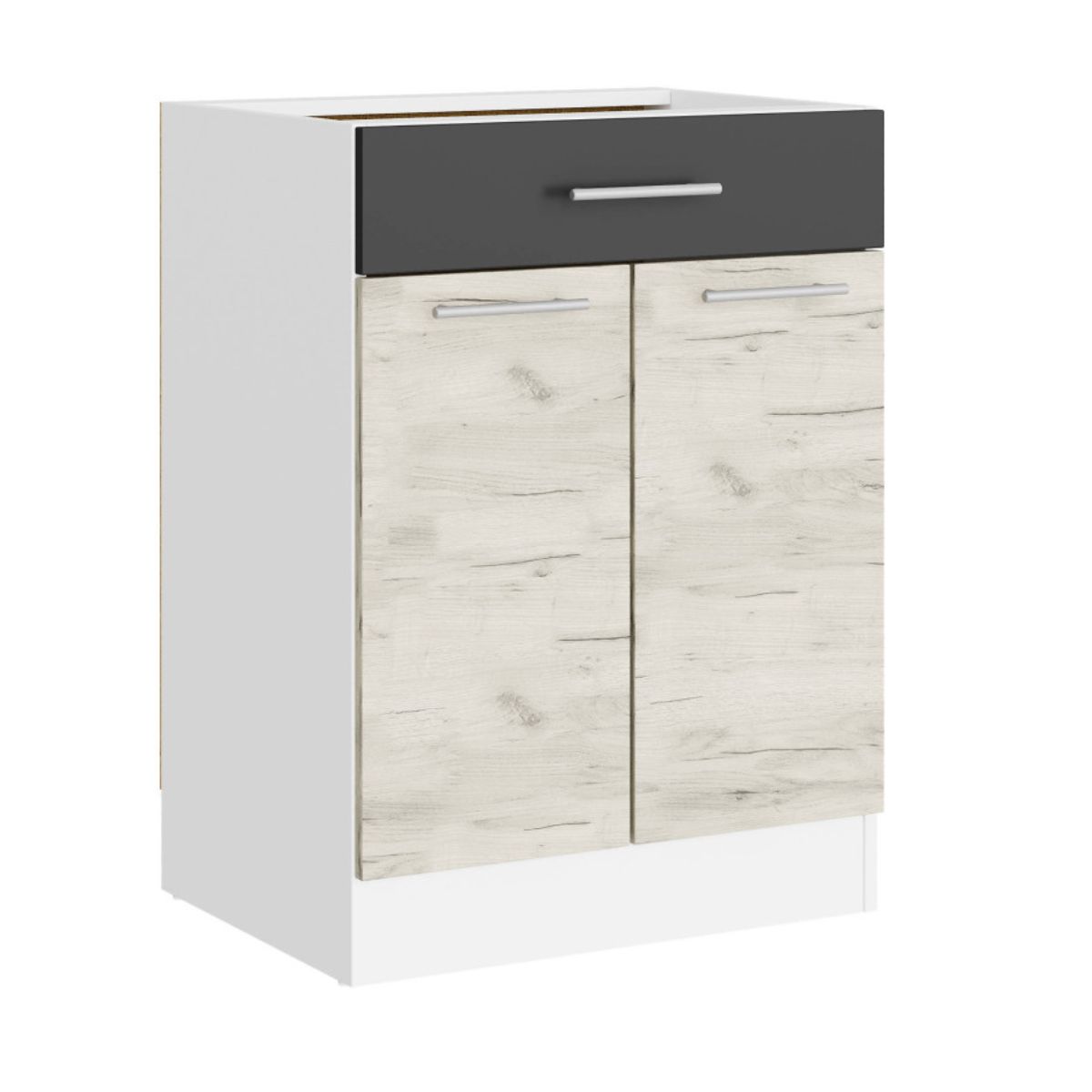 Кухонна нижня тумба з висувною шухлядою 60×46×82 см без стільниці, білий / дуб крафт білий