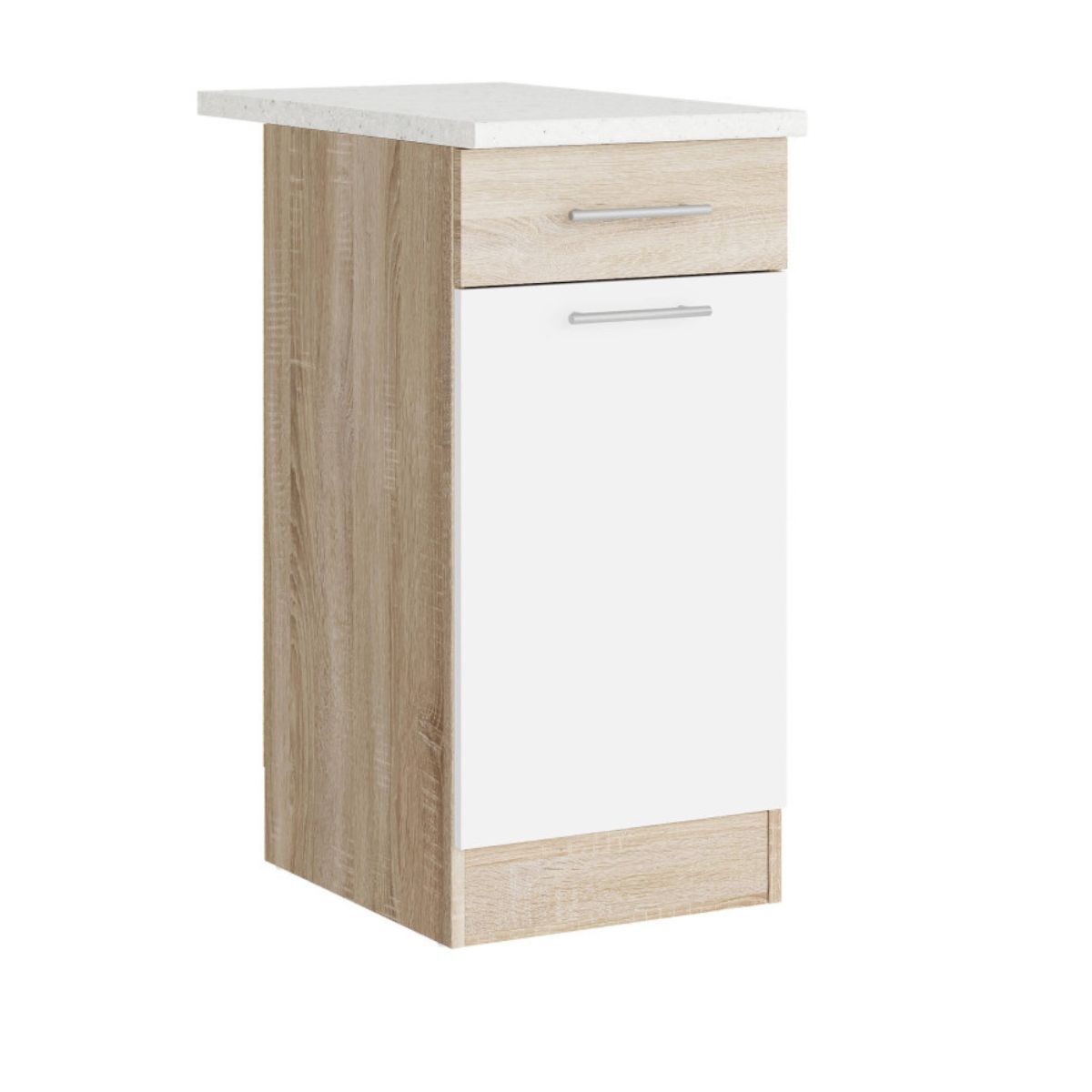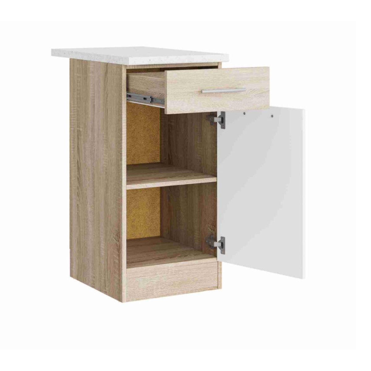 Кухонна нижня тумба з висувною шухлядою 40×46×82 см зі стільницею, дуб сонома / білий