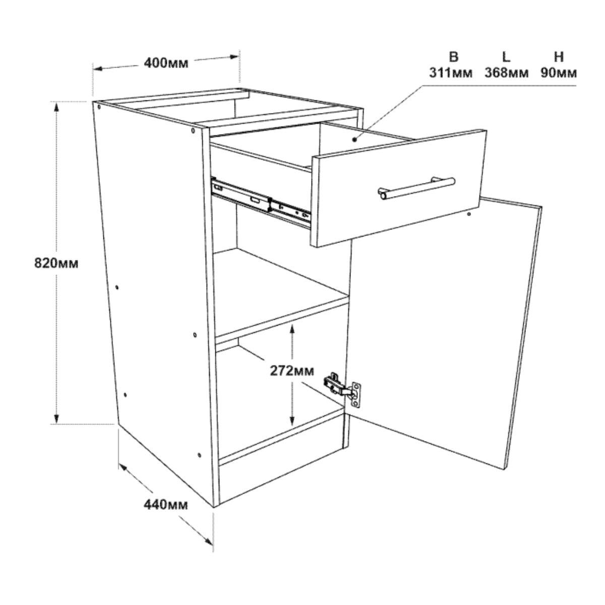 Кухонна нижня тумба з висувною шухлядою — компактний та практичний елемент кухонних меблів, який допомагає організувати зручне зберігання кухонного приладдя, посуду та інших необхідних речей.