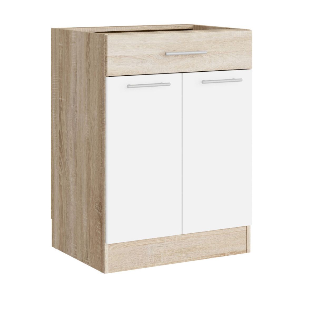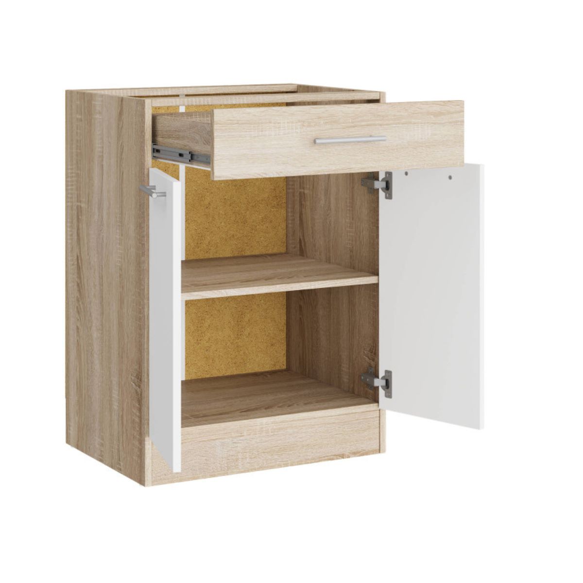 Кухонна нижня тумба з висувною шухлядою 60×46×82 см без стільниці, дуб сонома / білий