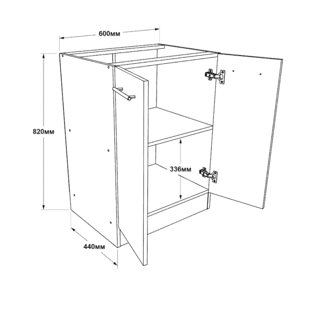 - Тип: нижня тумба з дверцятами