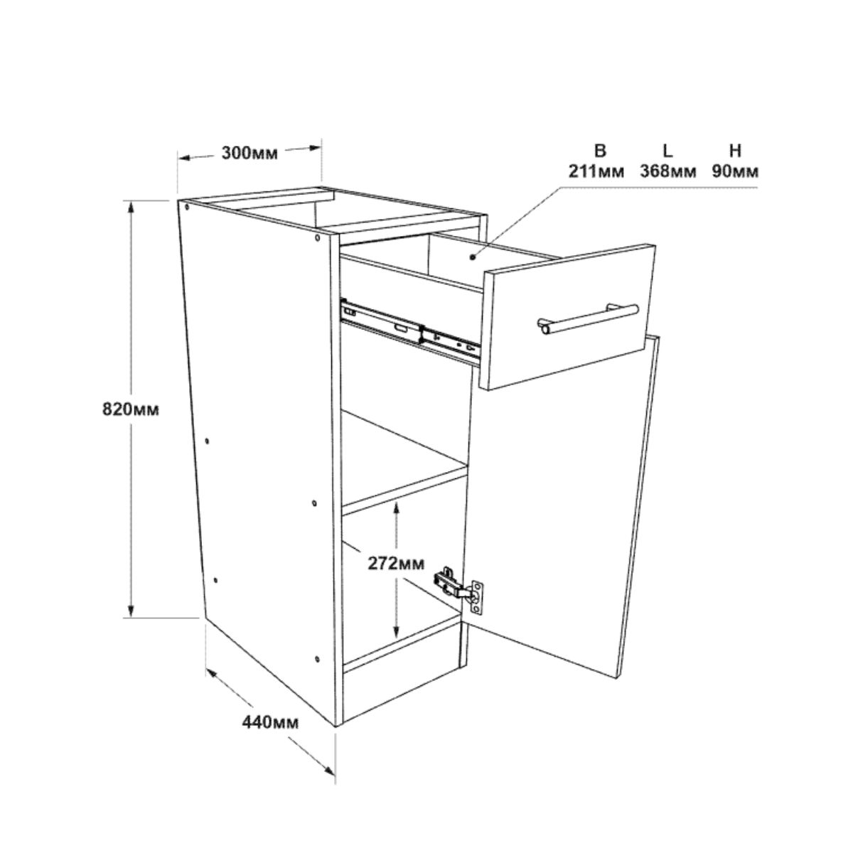 Кухонна нижня тумба з висувною шухлядою — компактний та практичний елемент кухонних меблів, який допомагає організувати зручне зберігання кухонного приладдя, посуду та інших необхідних речей.