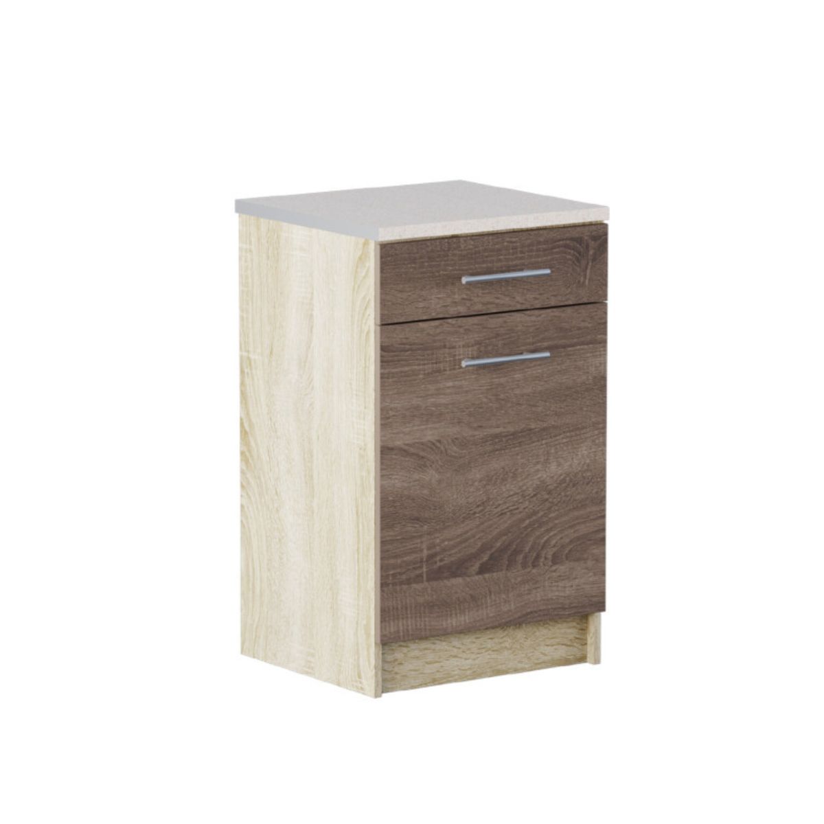 Кухонна нижня тумба з висувною шухлядою 50×46×82 см зі стільницею, дуб сонома / трюфель