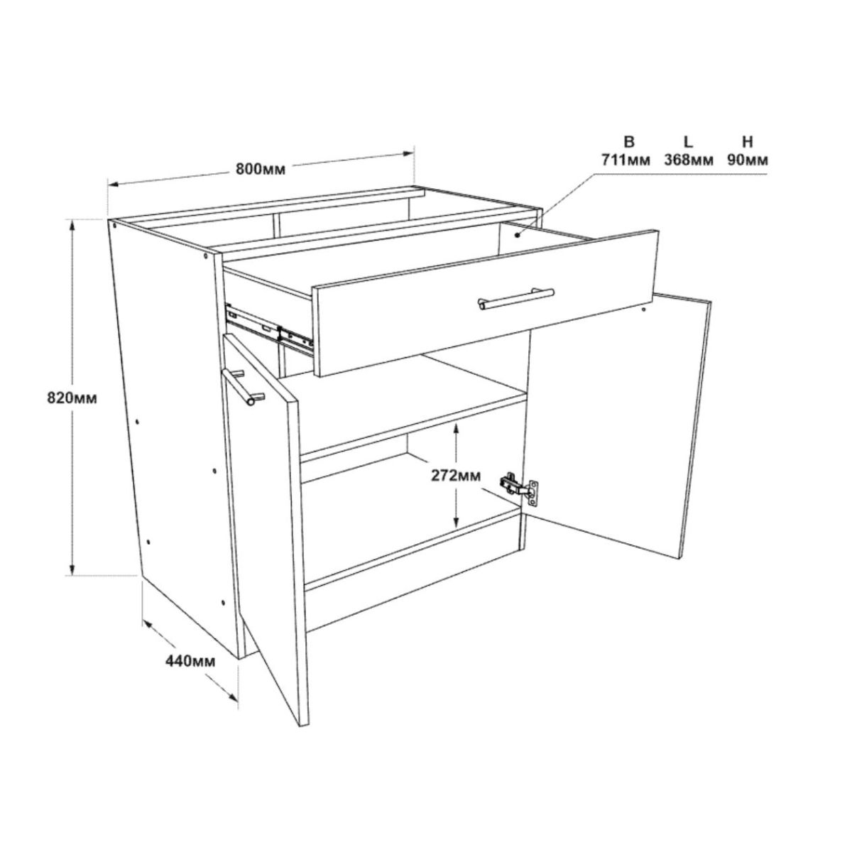 - Тип: нижня тумба з висувною шухлядою