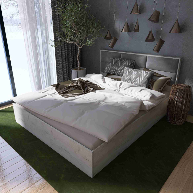 Ліжко КЛ-1400 140х200 з основою під матрац – Щит ДСП, Дуб Крафт Білий