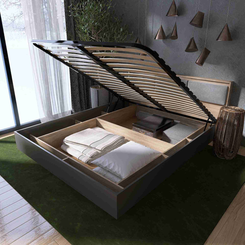 Ліжко СТ-1400, з ламелями та підйомним механізмом, Дуб Сонома, Графіт