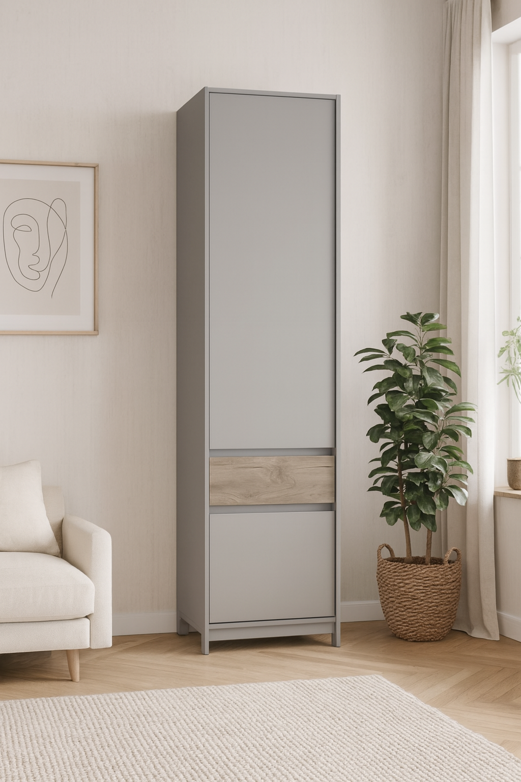 Пенал СЛ-500 — це компактний і водночас місткий меблевий елемент, який стане ідеальним рішенням для організації простору у вашій кімнаті. Завдяки вертикальній конструкції він займає мінімум місця, але забезпечує максимум функціональності для зберігання одягу, взуття, книг, білизни чи побутових дрібниць.